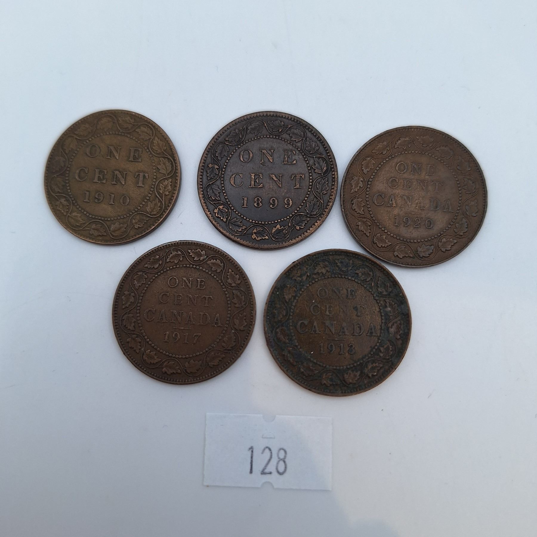 Five Canadian Large Cent Coins