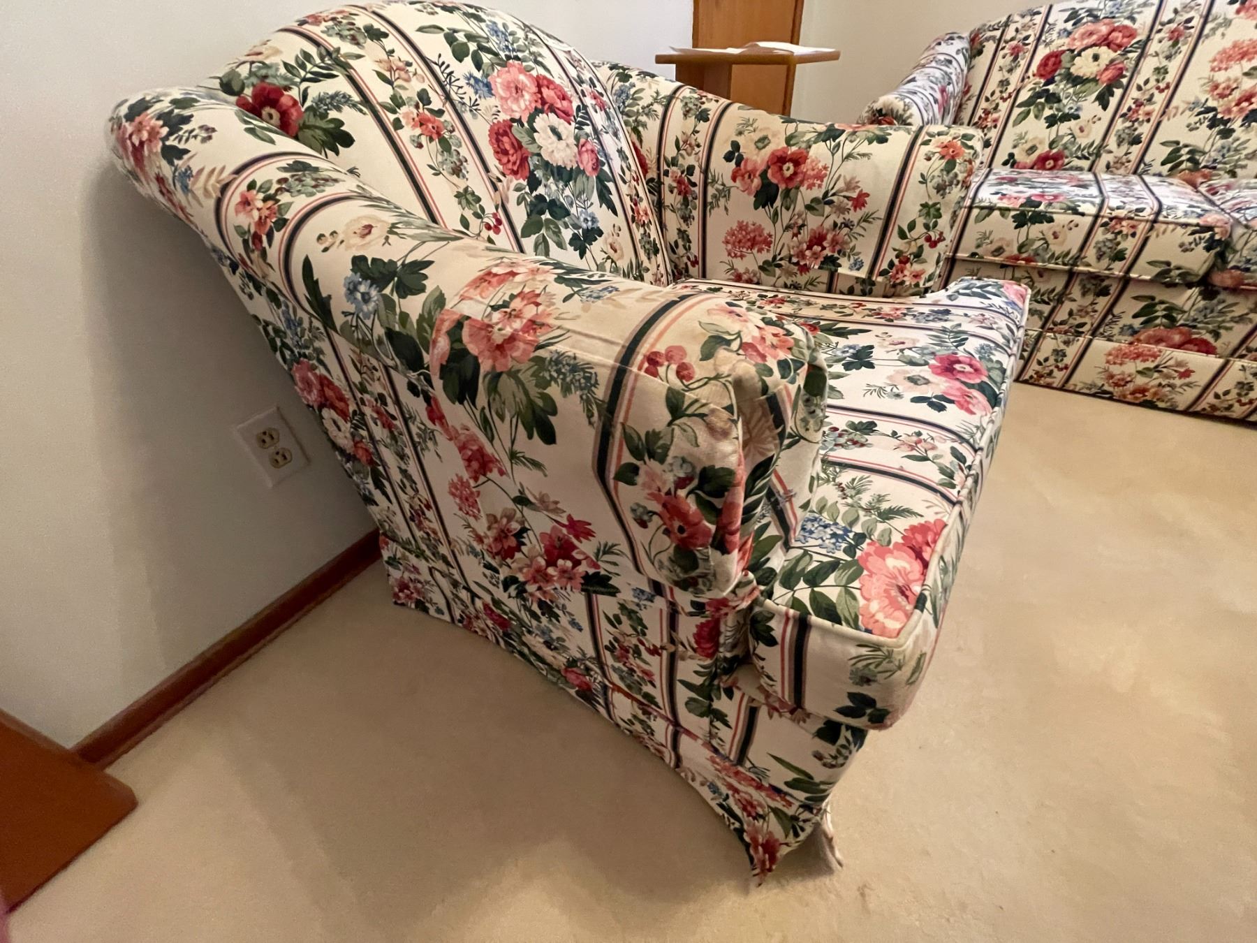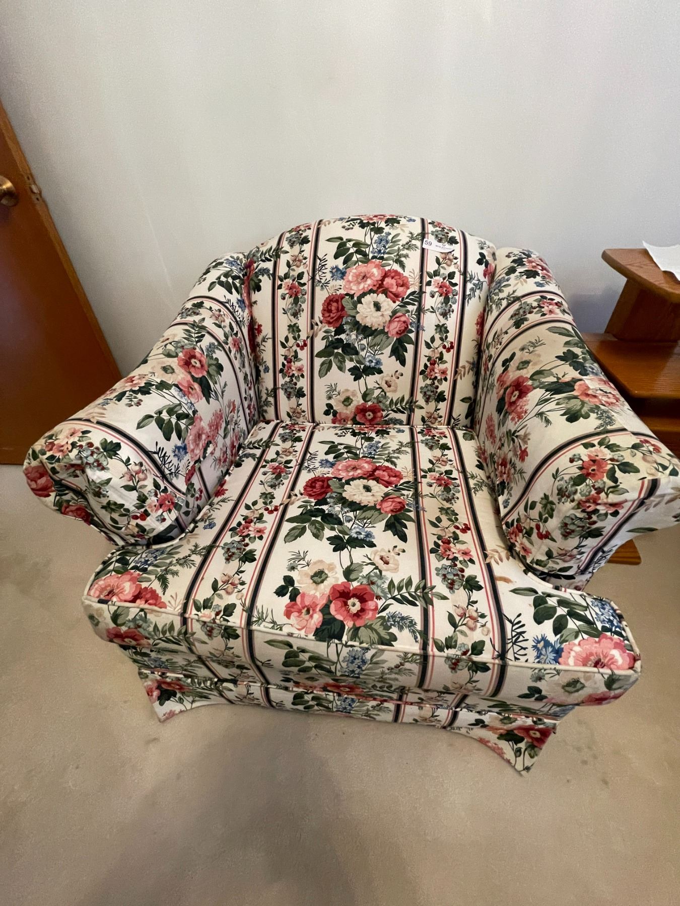 Floral Fabric Armchair - 35W x 34D x 32T