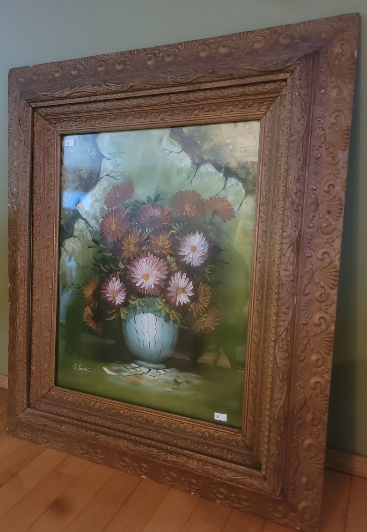 Floral Oil on Canvas Painting Signed 'D. Evan'  - 26W, 30T