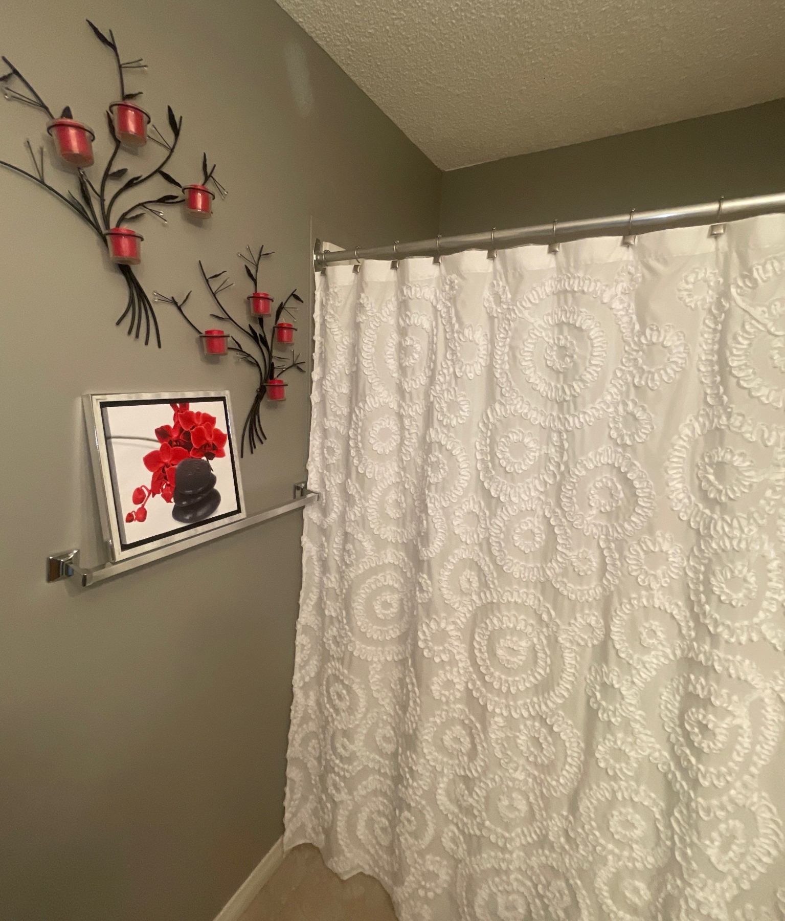 Flower Petal Textured Fabric Shower Curtain w/ Decorative Home Accents
