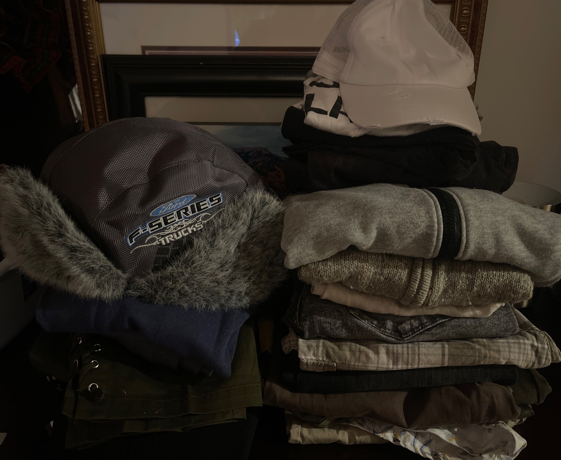 Ford Fur Hat w/ Stacks of Shirts & Pants Size M Ladies