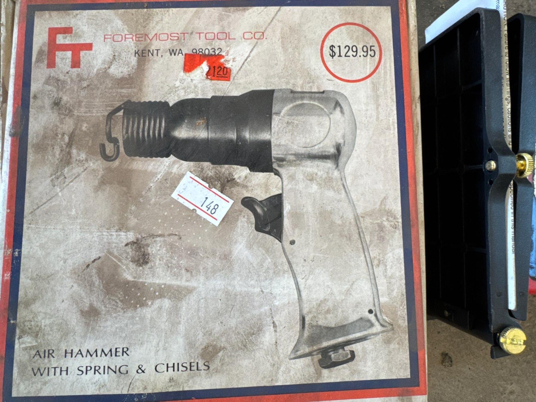 Foremost, toco air hammer with spring and chisel job mate laser leveller