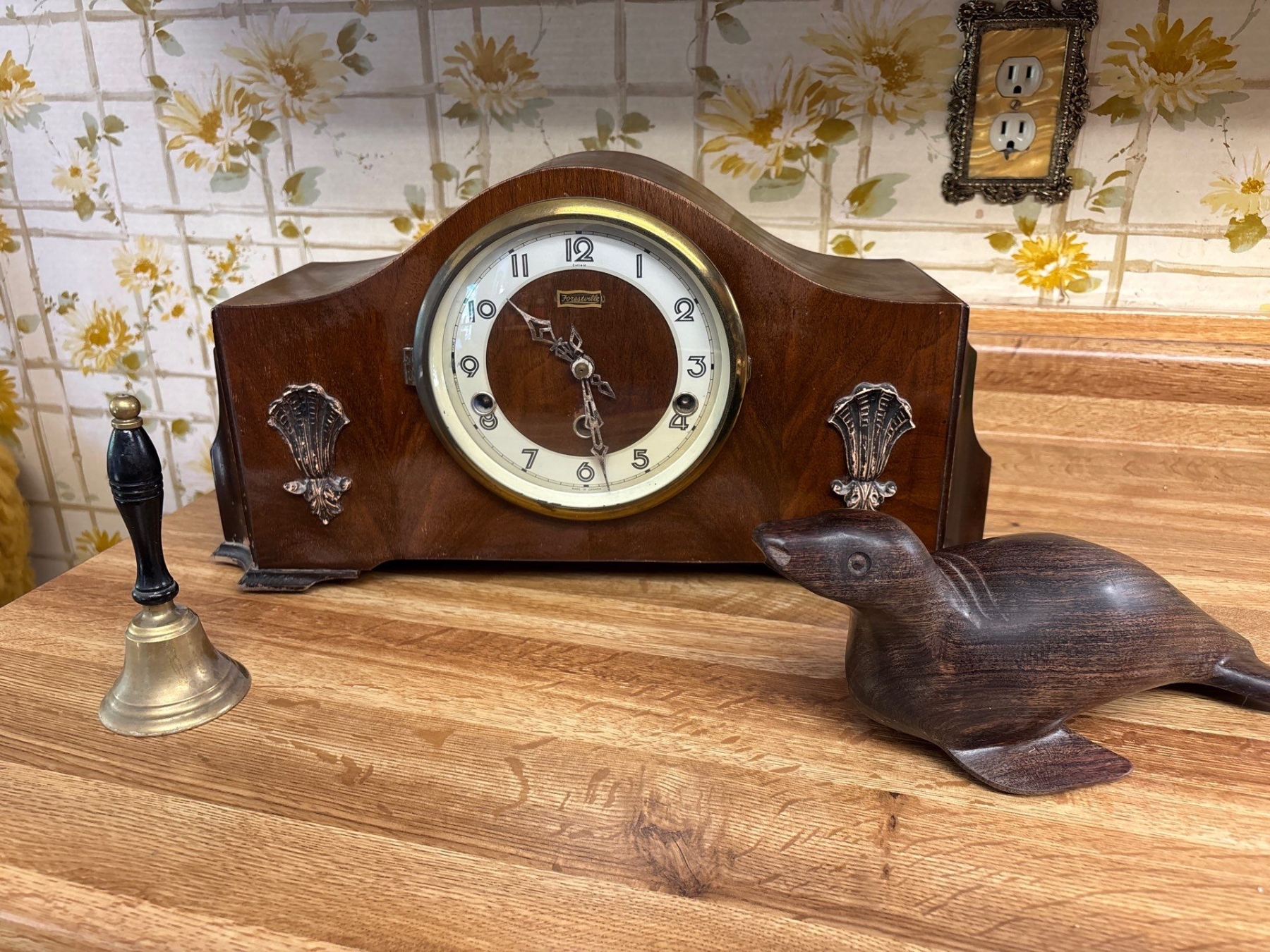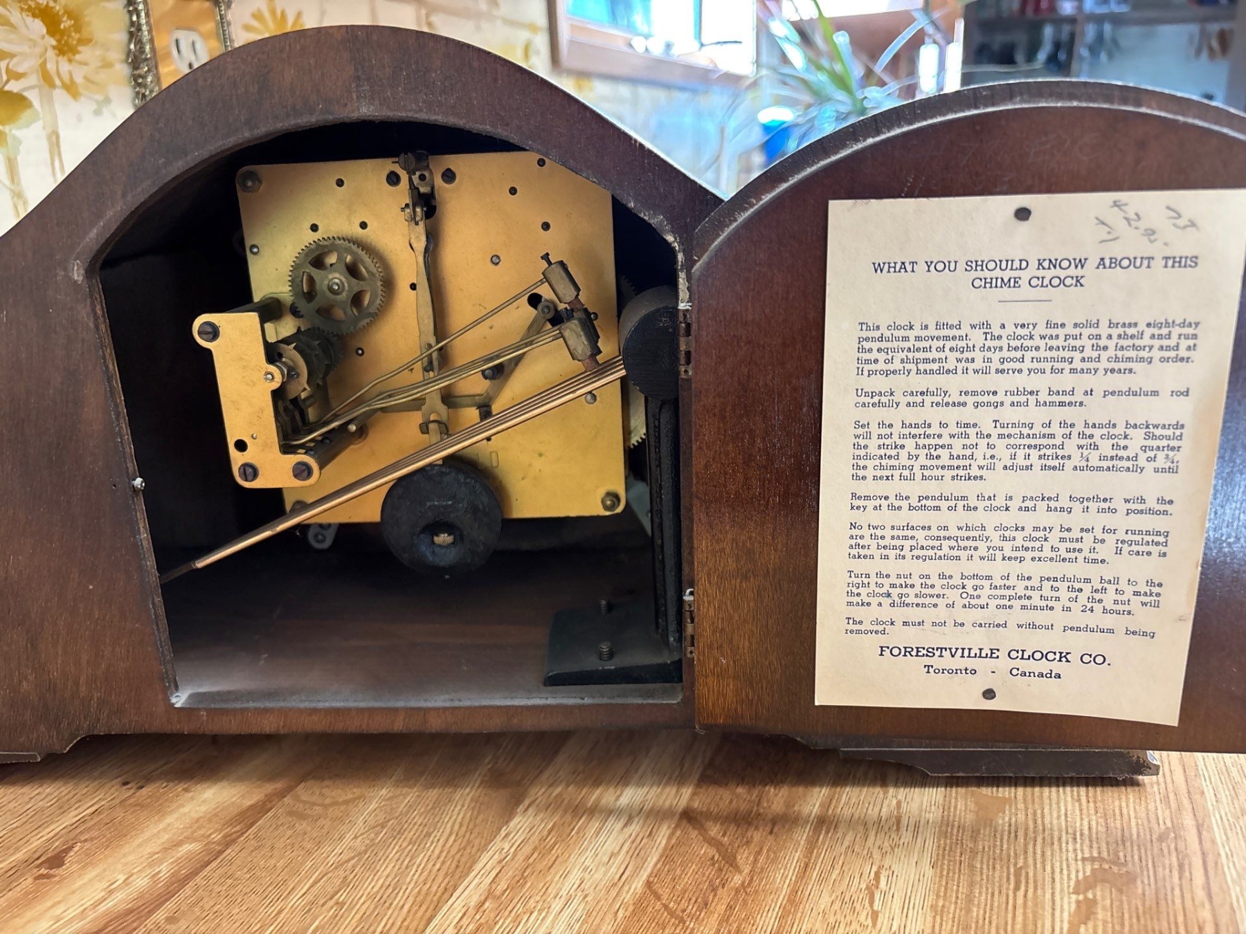 Forestville Chime Clock Company Clock With Handmade Wood Seal & Bell