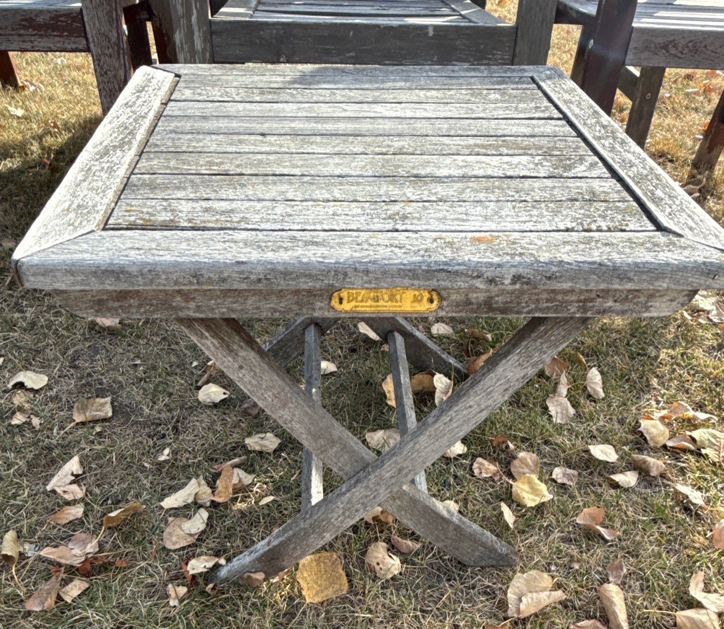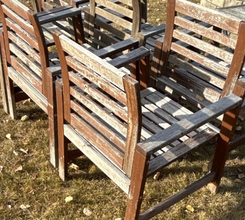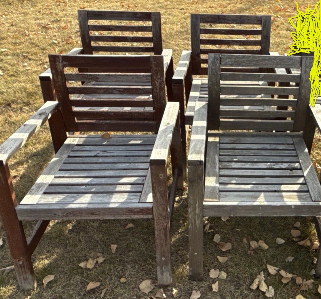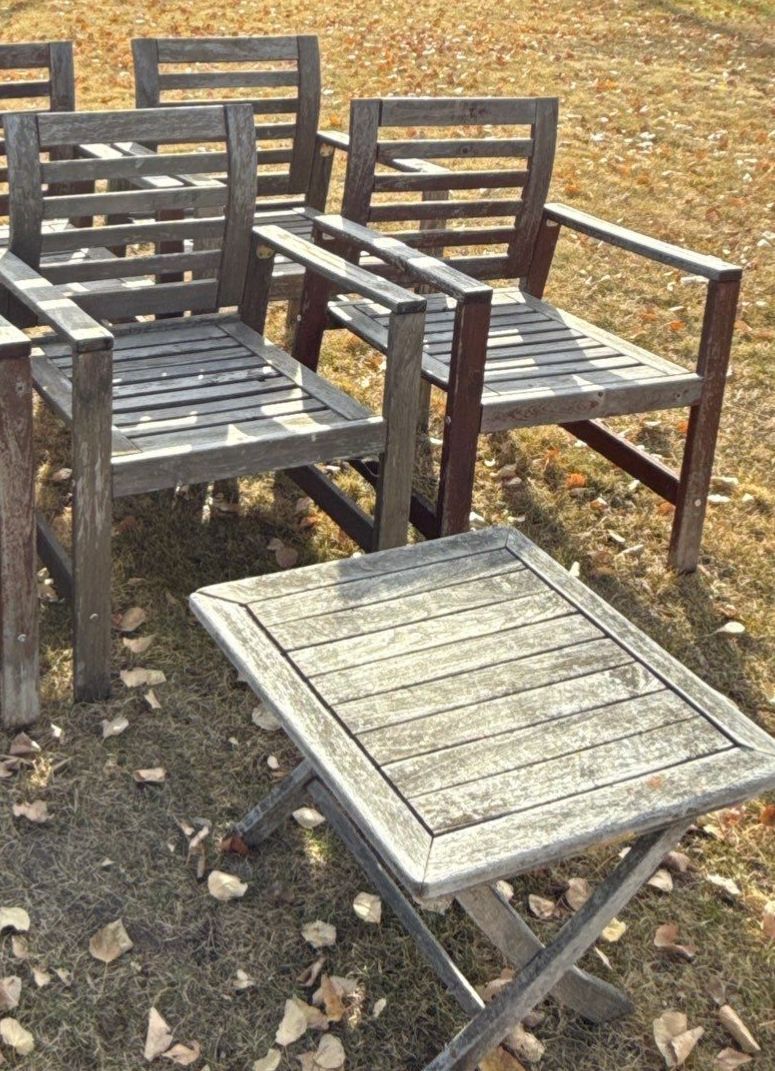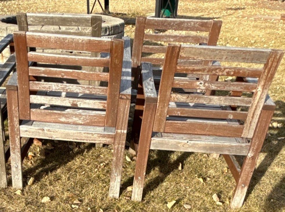 Four Wooden Fire Pit Chairs w/ Small Wood Table