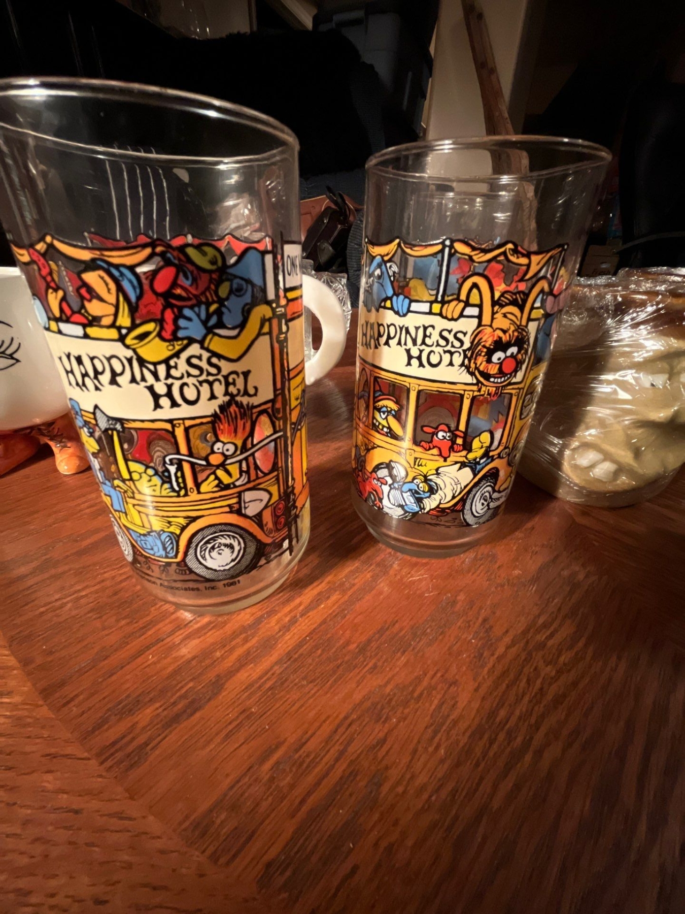 Four goofy glasses, Batman, glasses and McDonald’s collector glasses