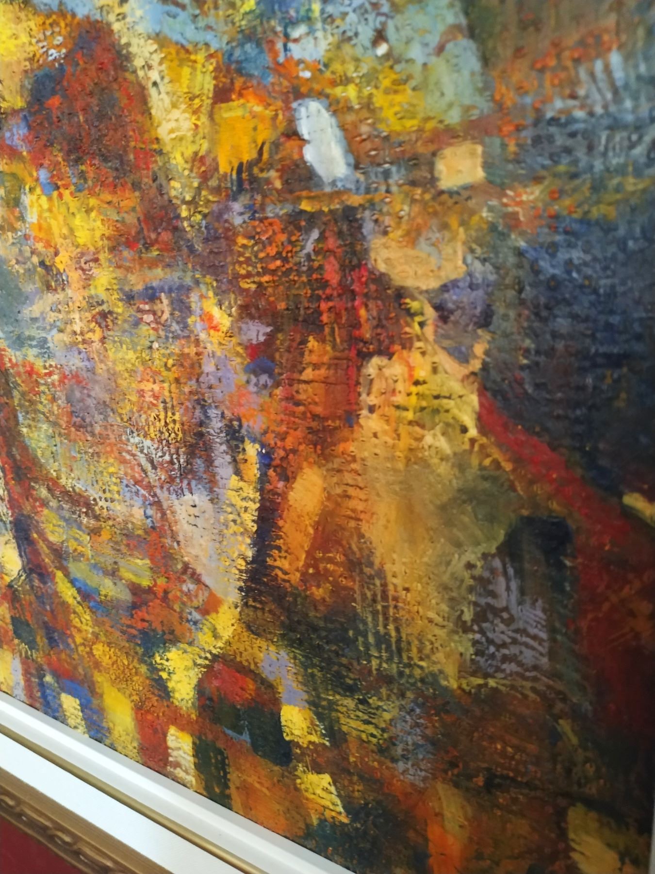 Artist: Unknown Size: 22.5"H x 26.5"W Medium: Paint on Canvas Edition: Original Condition: Excellent Signature: No Signature Description: Framed abstract canvas painting
