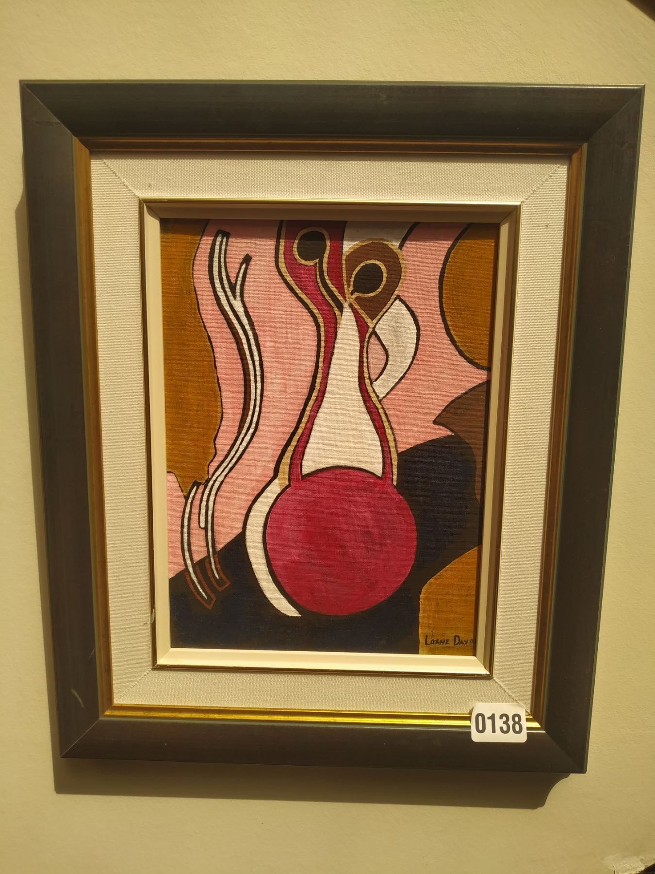 Artist: Lorne Day Size: 18"H x 15"W Medium: Paint on Canvas Edition: Original Condition: Excellent Year: 2003 Signature: Signed, Lower Right Description: Framed abstract painting.