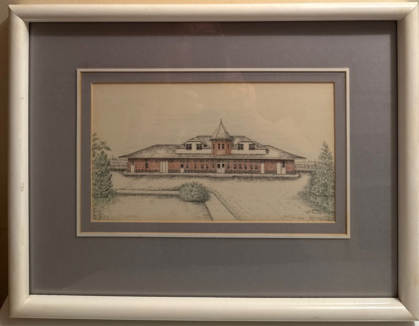 Framed Architectual Sketch By M.E.Larson 21/100