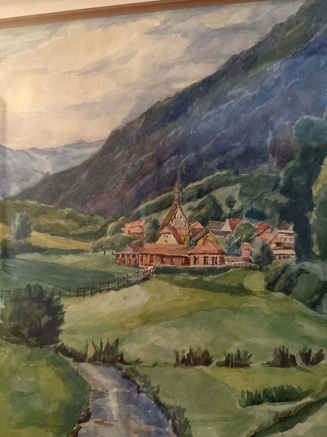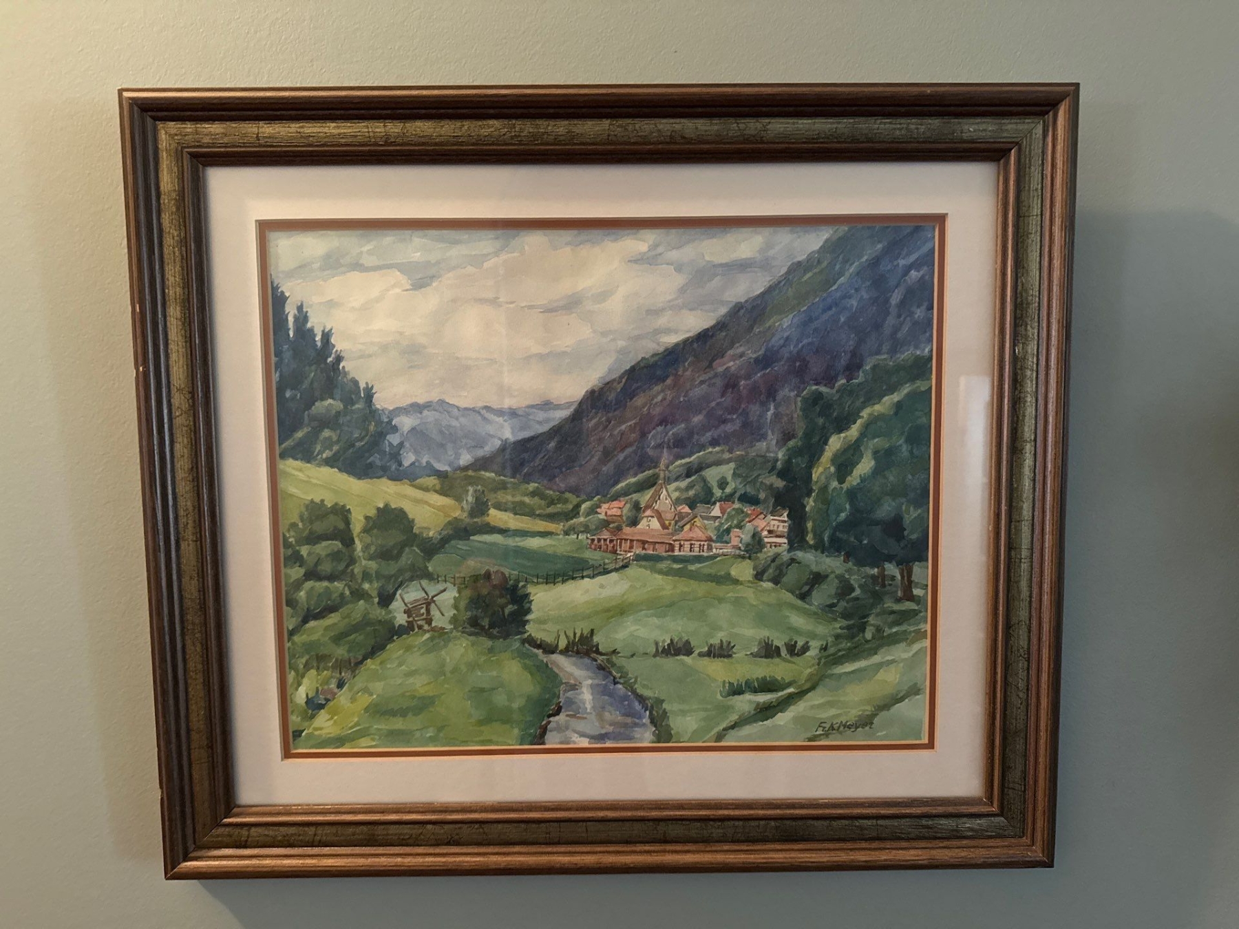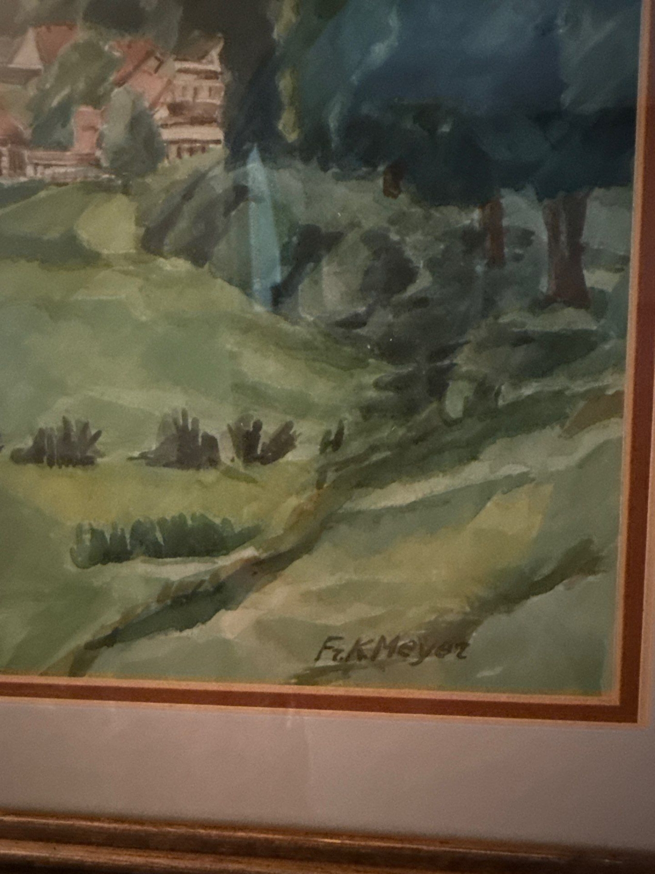 Framed Countryside Watercolor, By F. K. Meyer - 19x16.5