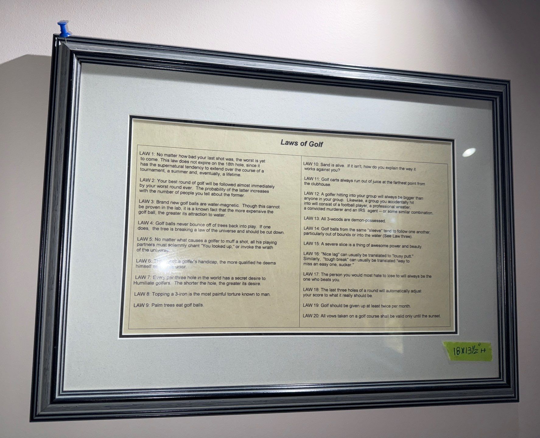 Framed Golfing Landscape & "Laws Of Golf" Framed Wall Hanging Collectible Items