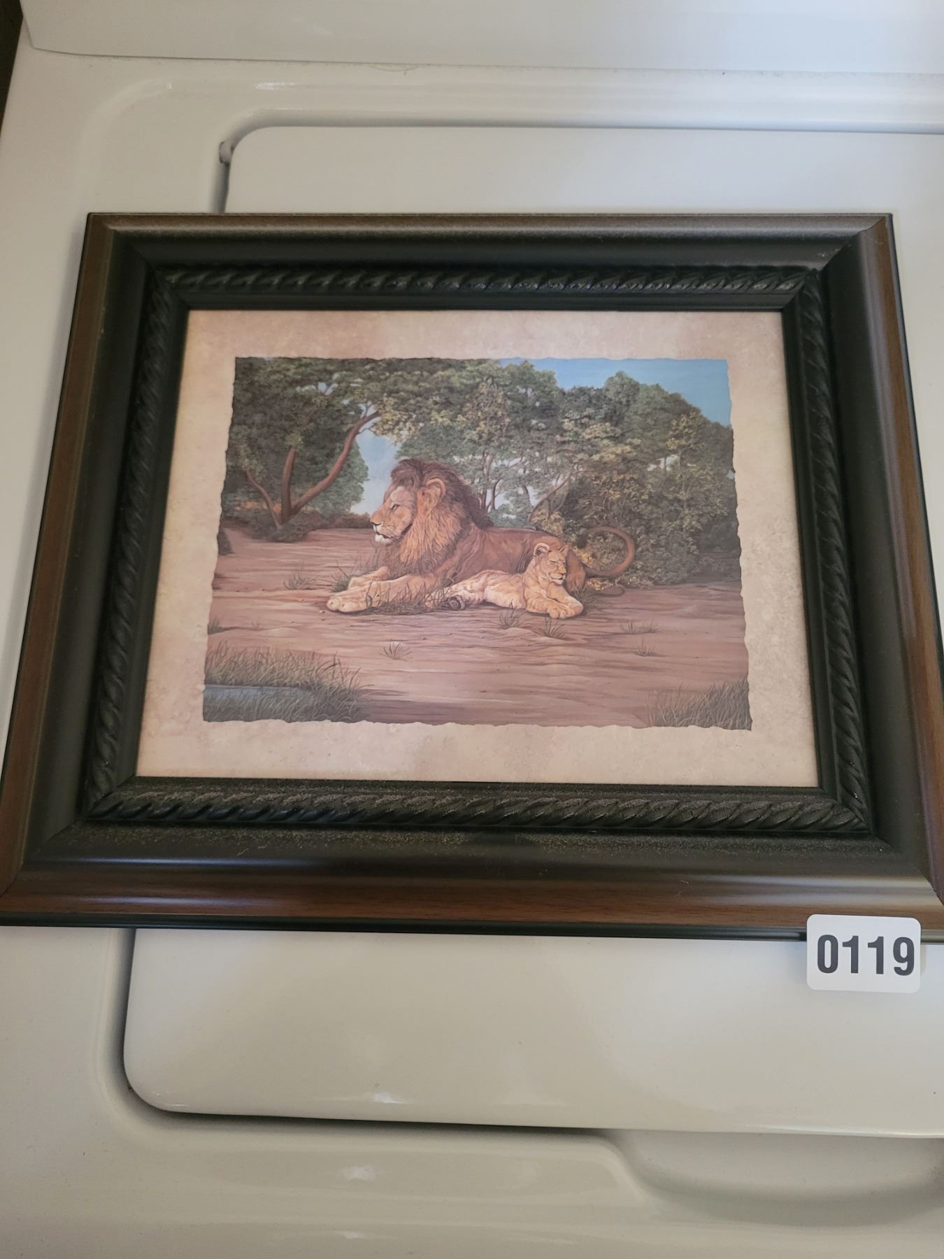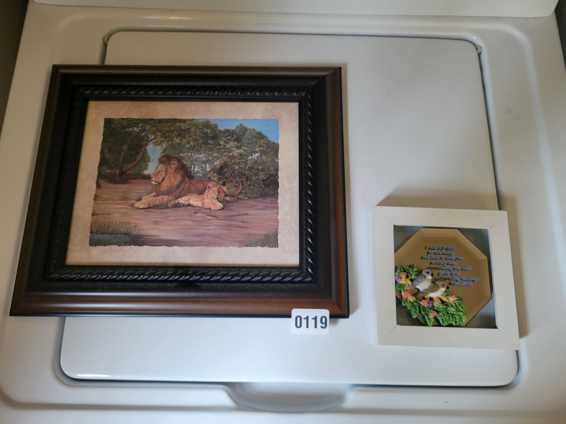 Framed Lion Print 14"w x 12"h & Wall Hanging Prayer