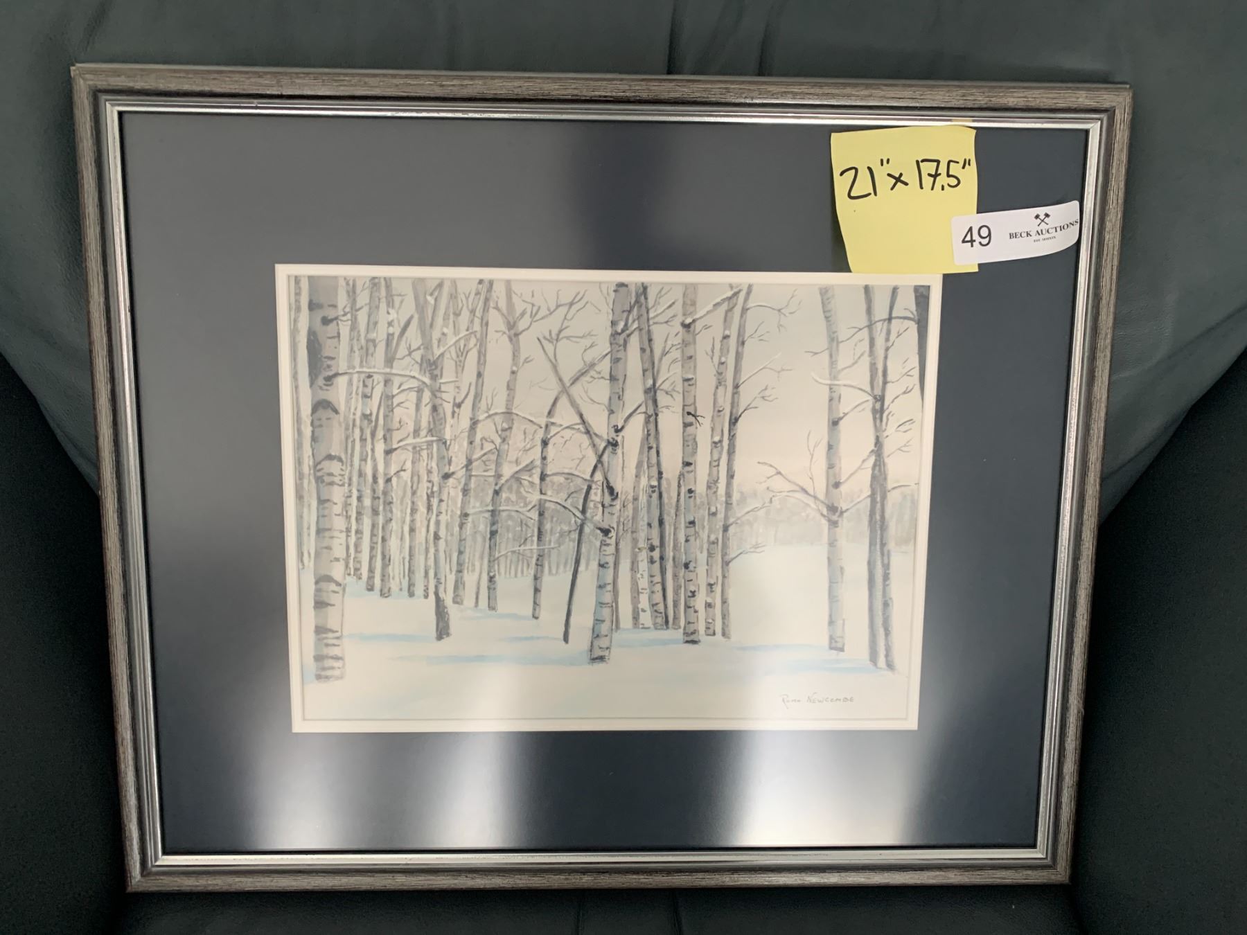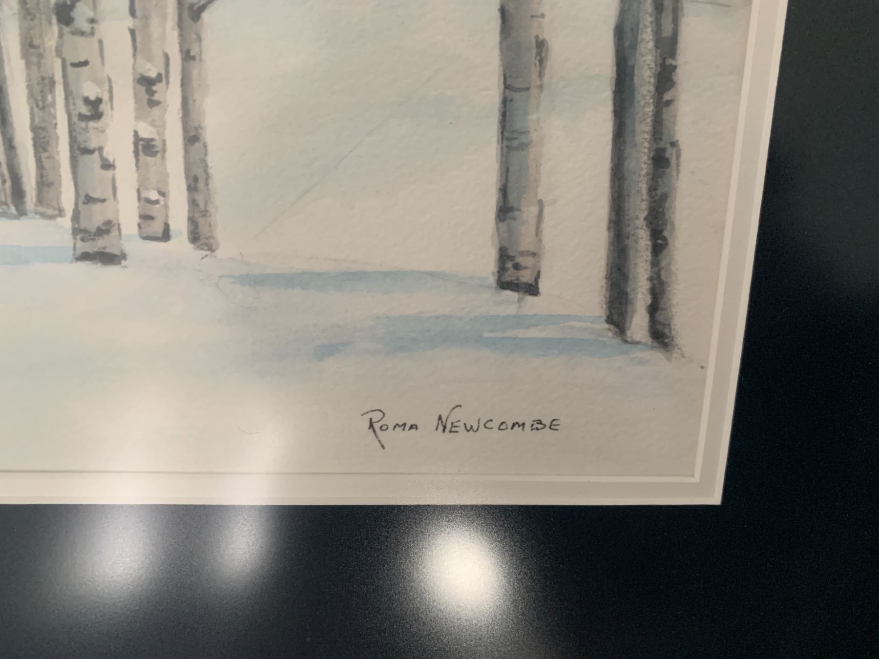Framed Original Watercolour of Winter Forest by Roma Newcombe (21  x 17.5 )