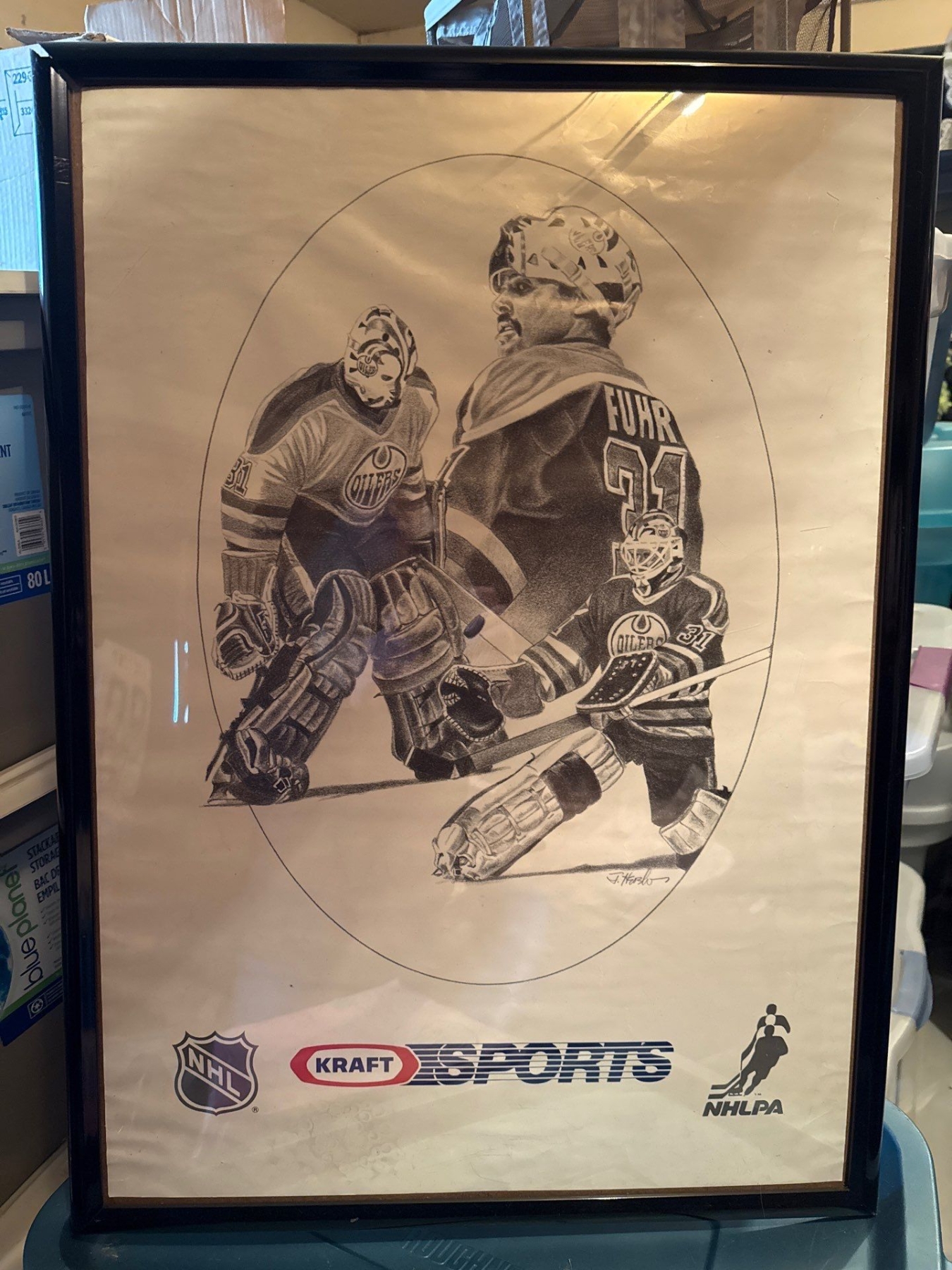 Framed Print Pencil Drawing Featuring Hall of Fame Goaltender Grant Fuhr (1986-87)
