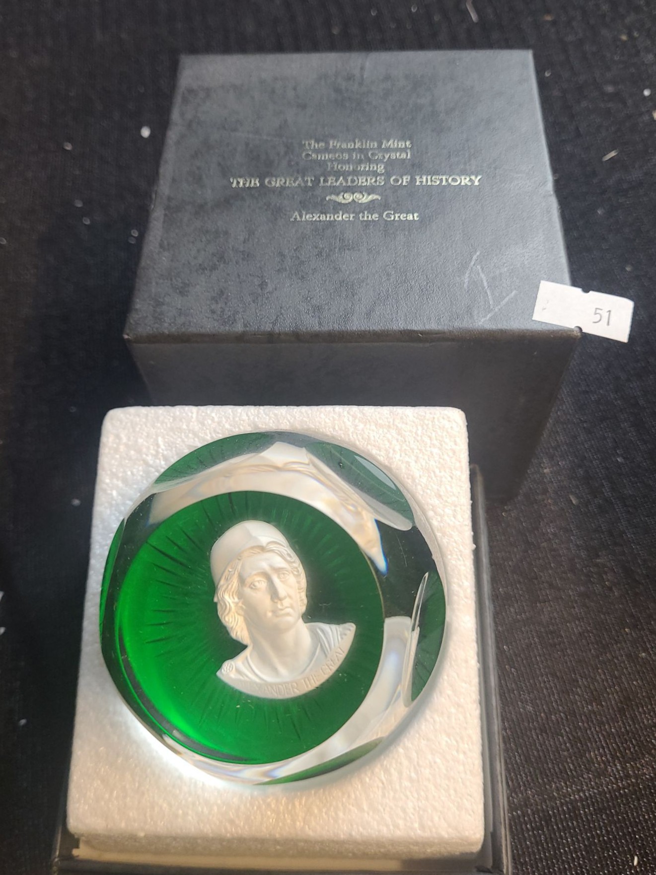 Franklin Mint- Baccarat Cameo in Crystal Paperweight: Alexander the Great