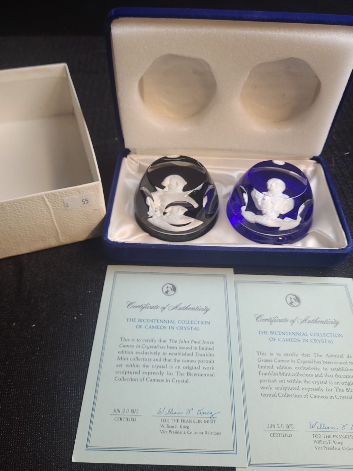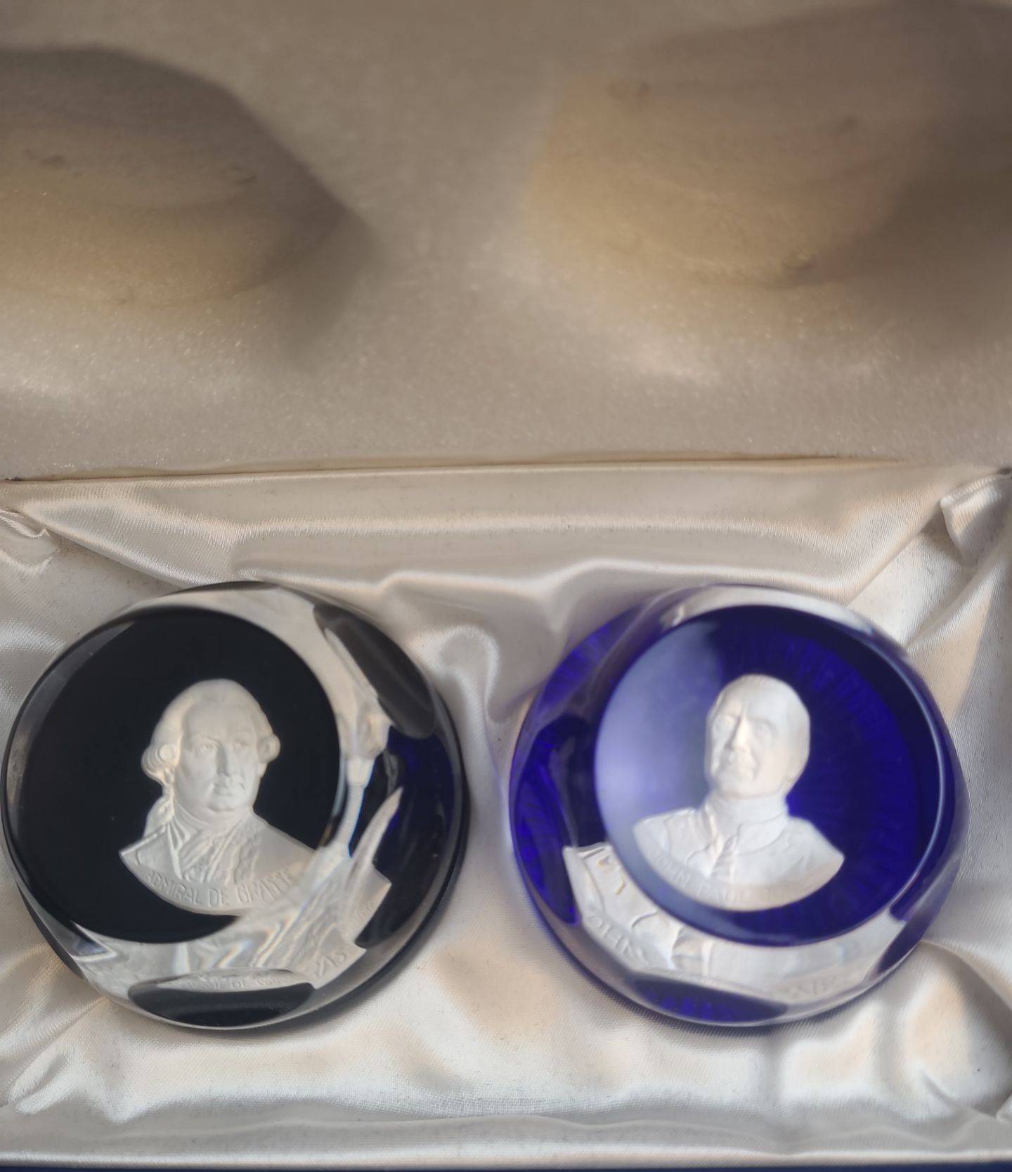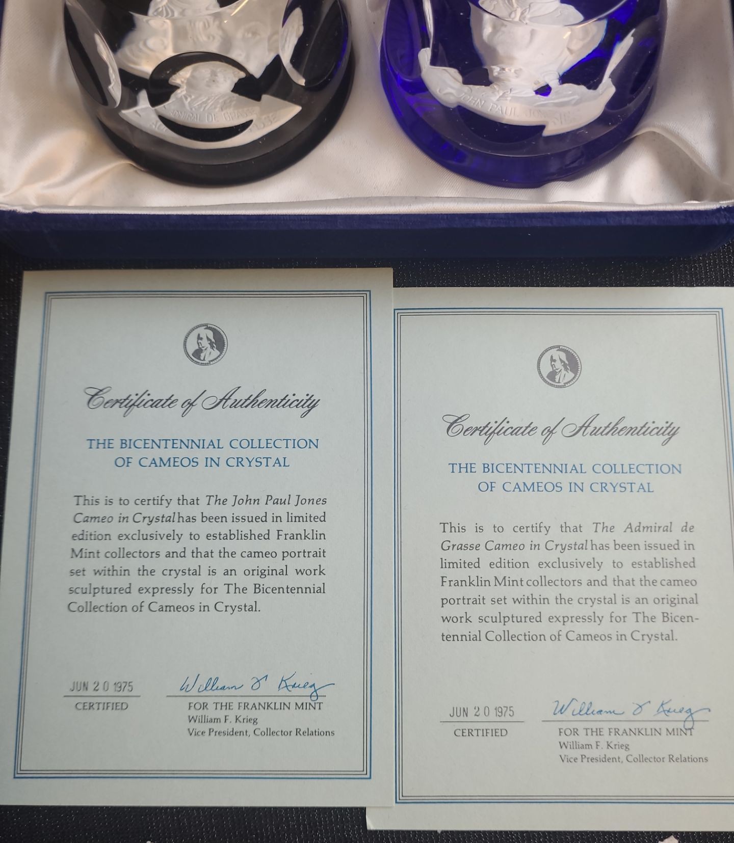 Franklin Mint- Baccarat Cameo in Crystal Paperweights: John Paul Jones and Admiral de Grasse