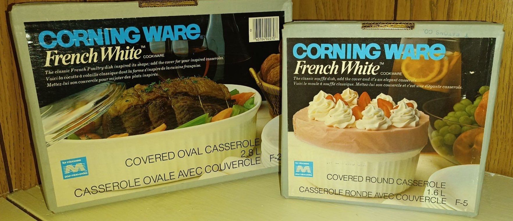 French White Corning Ware Covered Oval Casserole Dish & Covered Round Casserole Dish