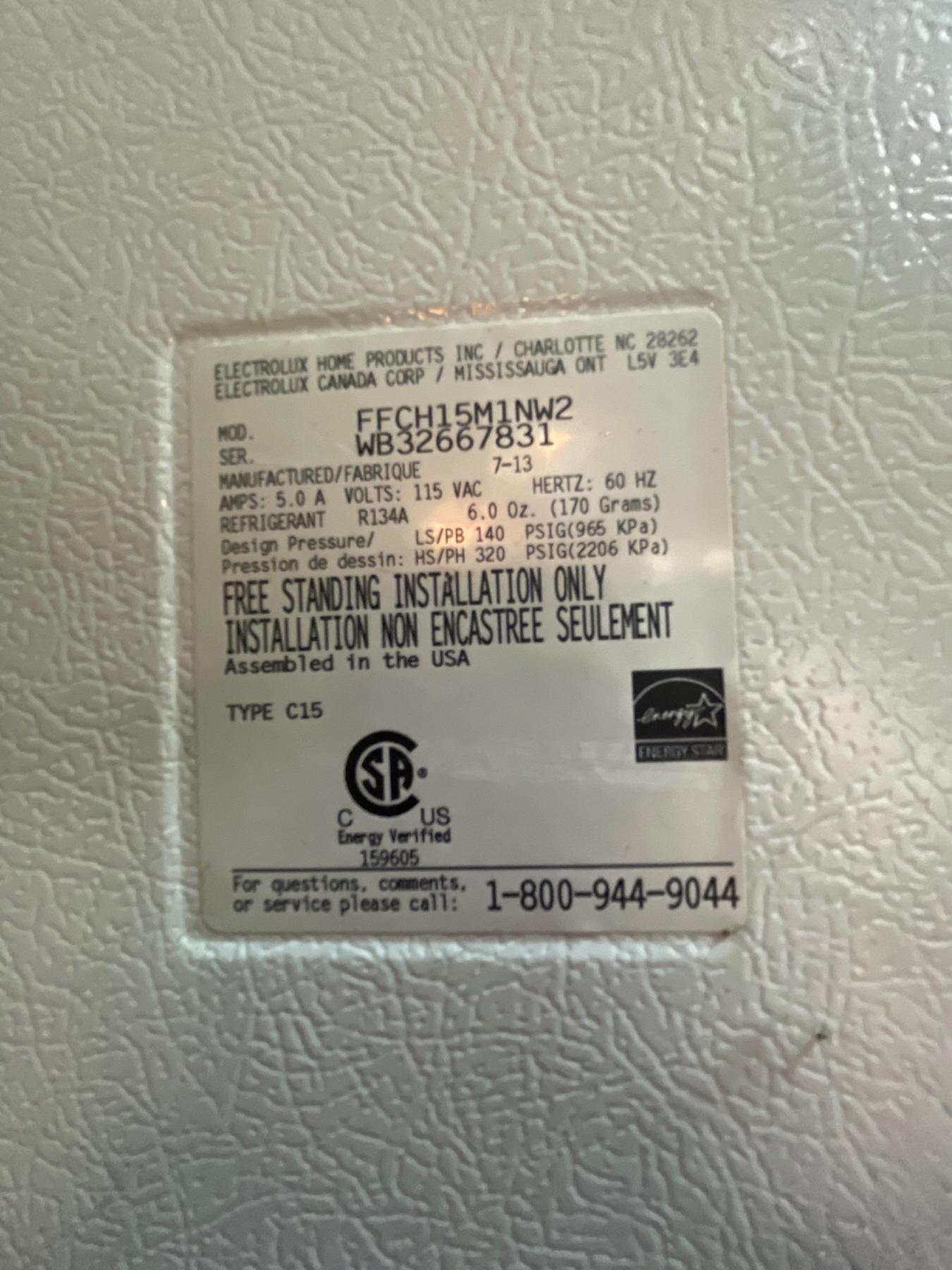 Frigidaire Upright Large Freezer Model#.FFCH15M1NW2 60"w x36"d x44"tall (Not Tested)
