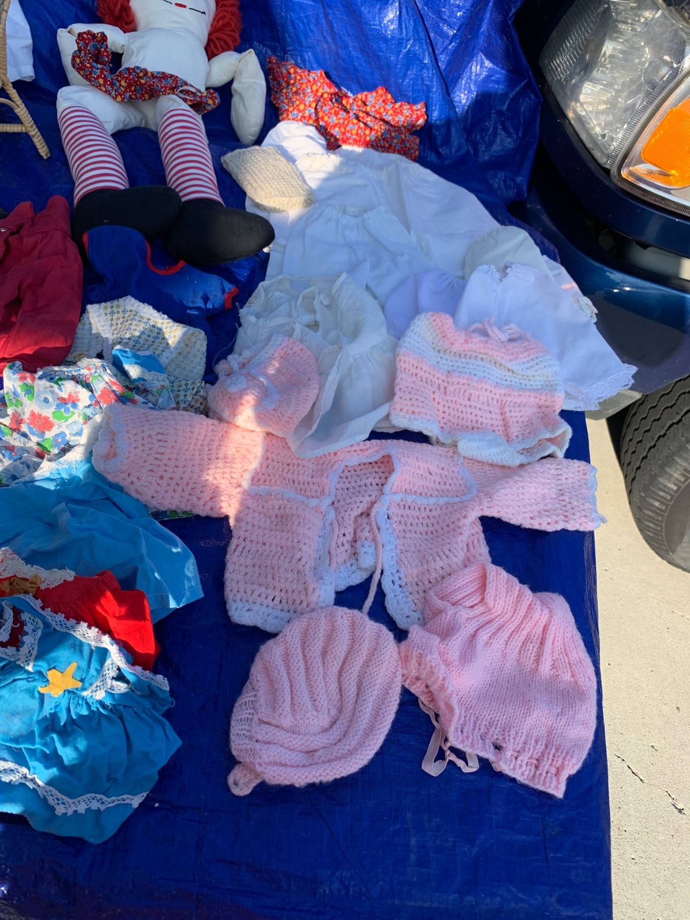 Frog Door Stop, Pair of, Gold Picture Frame, Ceramic Box & Cats, Ragged Ann & Asst Dolls & Doll Clothing