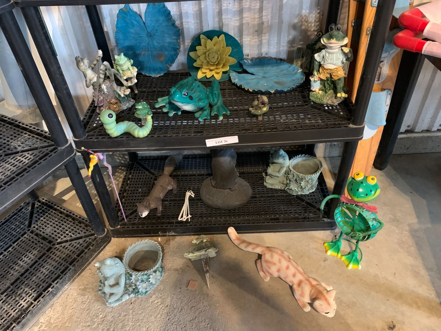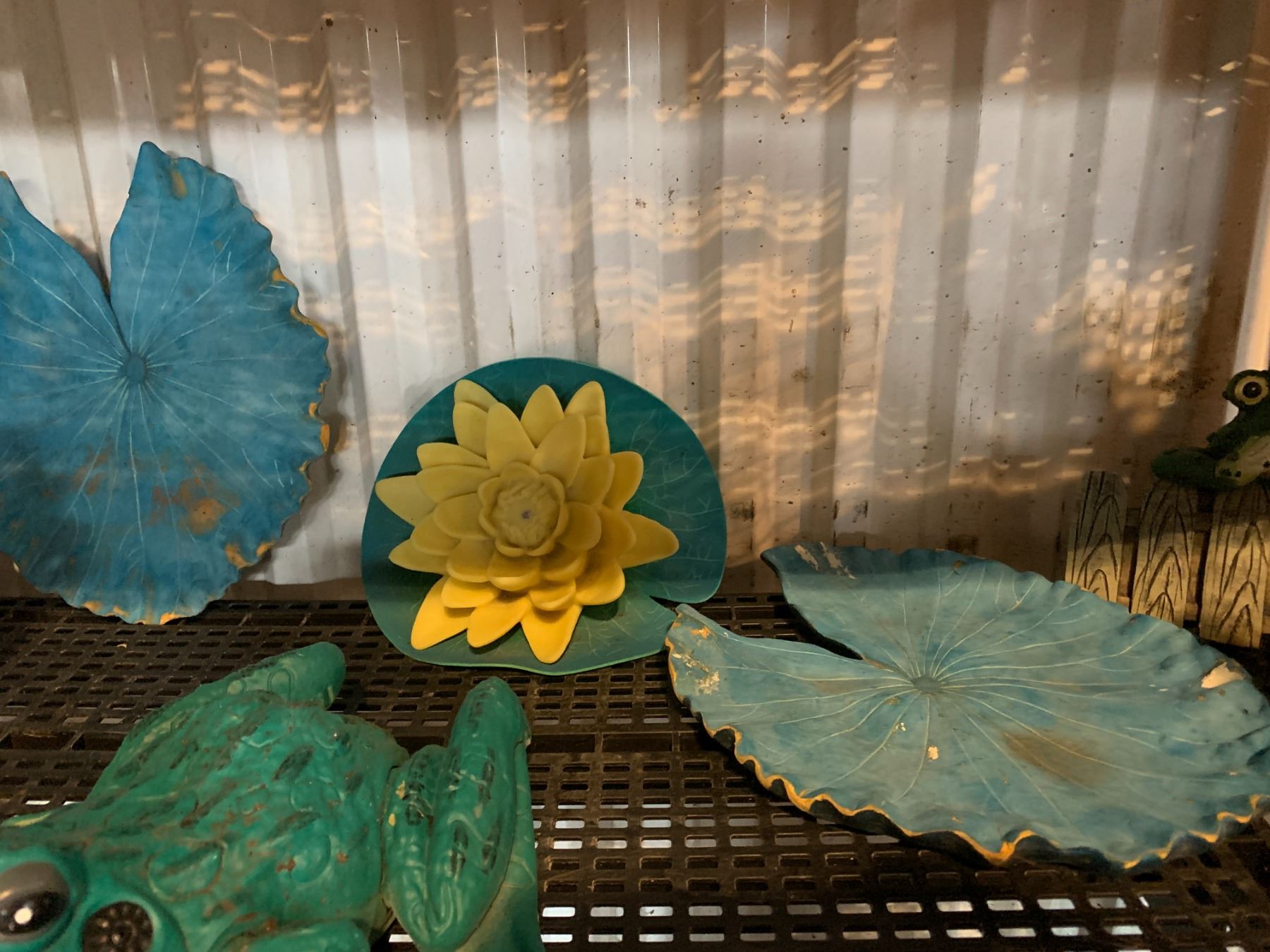 Frog, Lily Pad, Animal Garden Décor, Plat Pots (1 Broken) and Garden Stakes