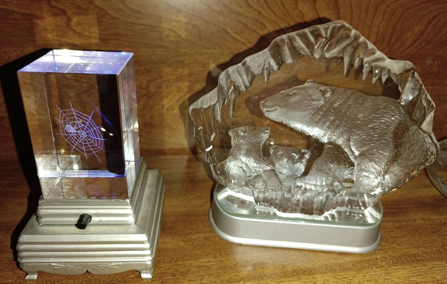 Frosted Crystal Light-Up Animal Figurine w/ Laser etched 3D Interchangeable Glass Light up Cube w/Spider web & More Home Decor