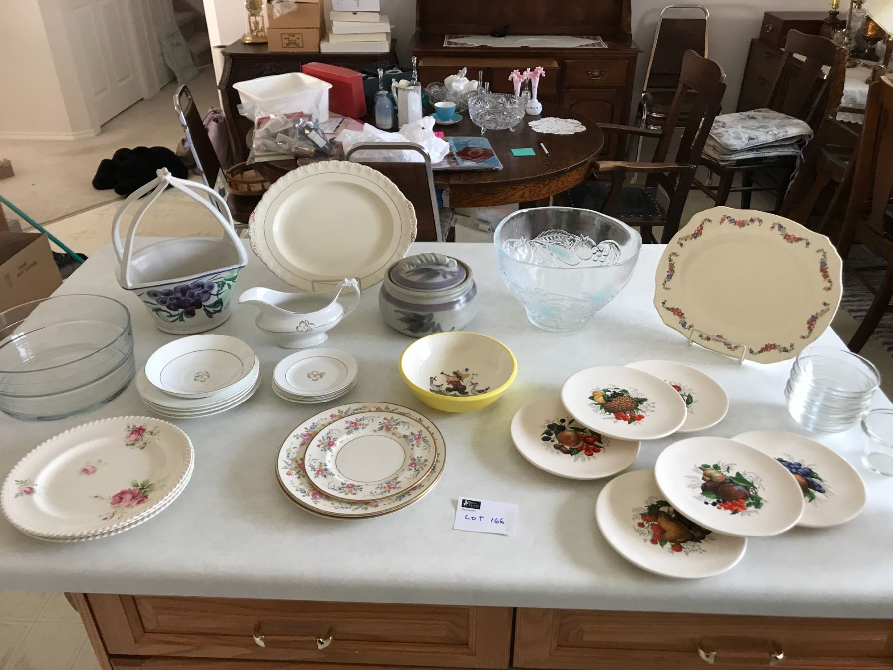 Fruit Plates, Glass Bowl, Pottery Basket, Asst Dishes, Gravy Boat, Platter, Pottery Serving Dish