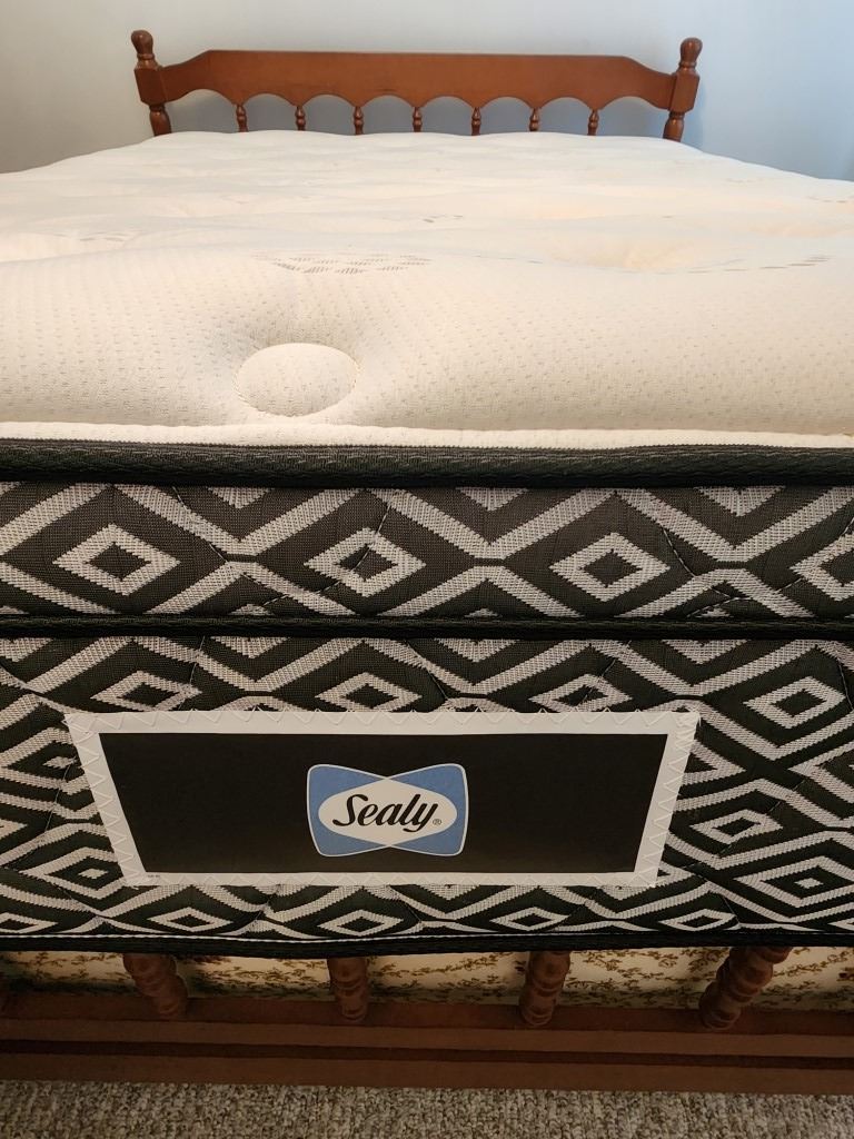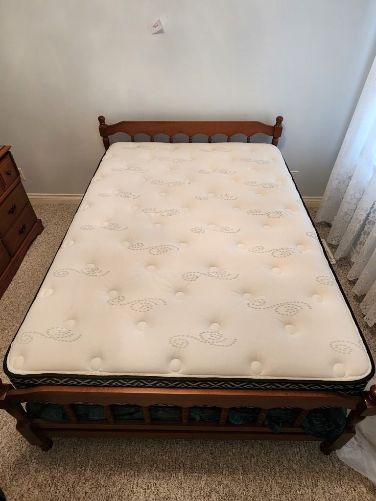 Full/Double Bed Mattress & Boxspring, Maple Headboard & Footboard