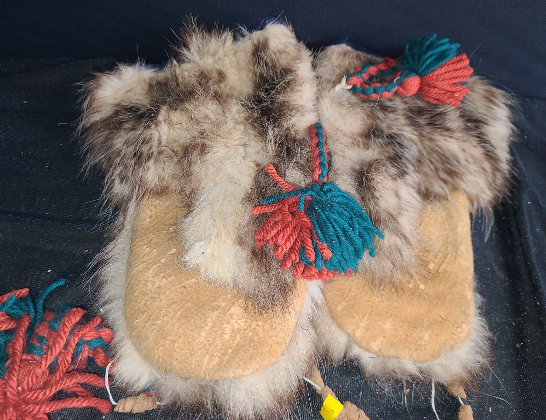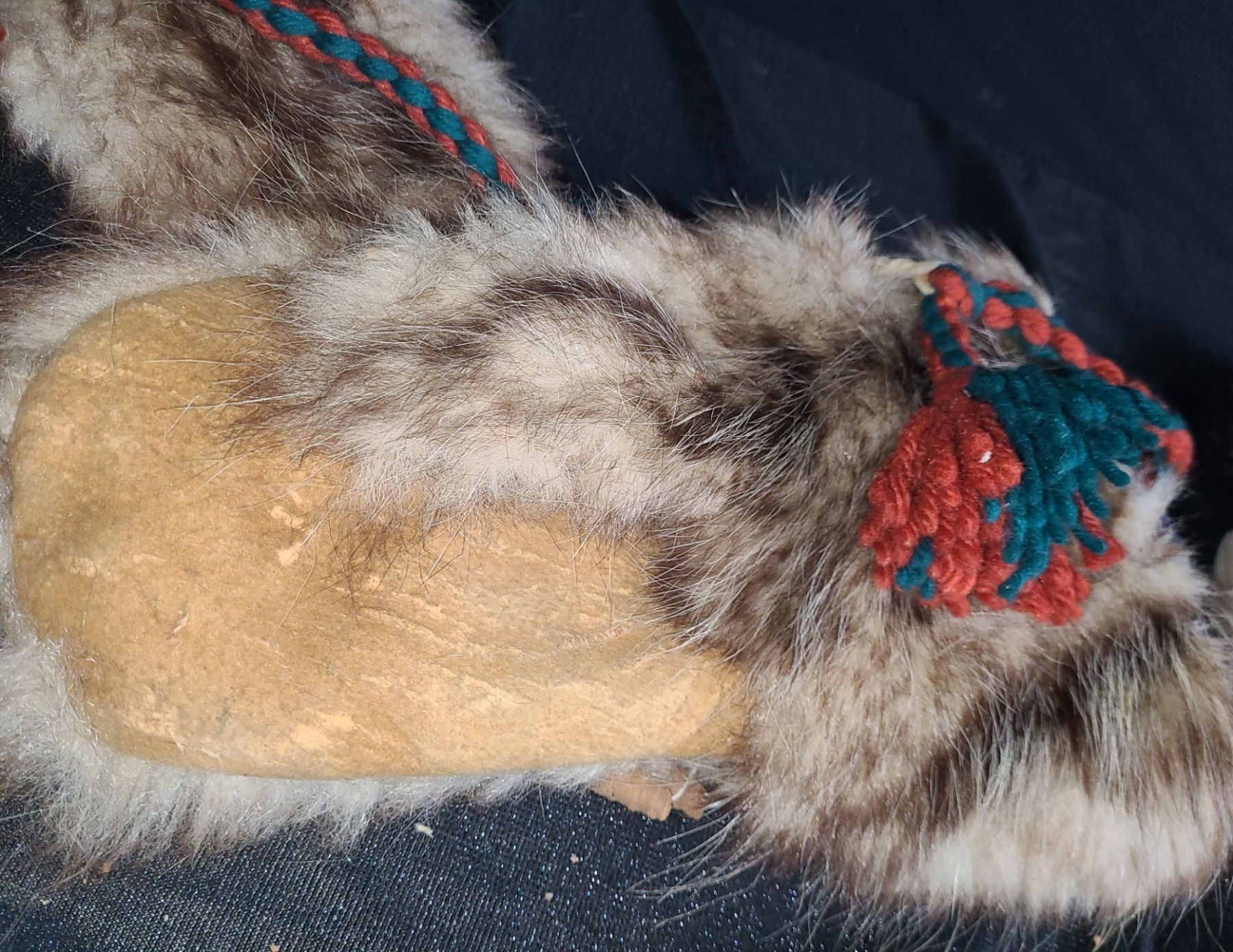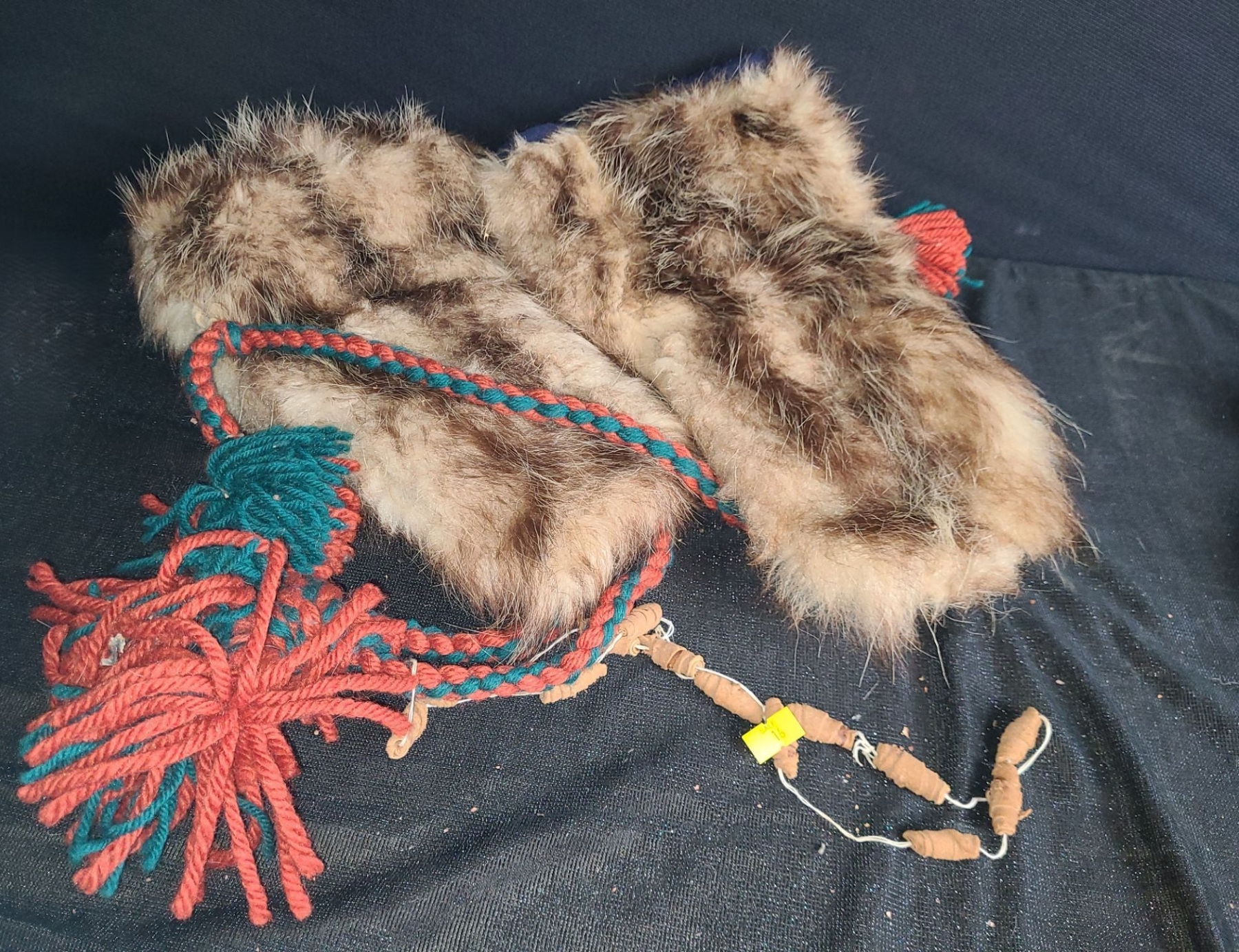 Fur Mittens w/ Yarn Attachments- Adult Sized, Length From Top to Tip 13
