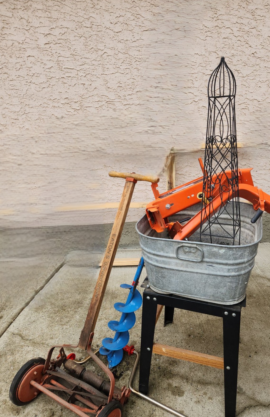Galvanized Bucket, Eatons Garden Grove Trimmer, Ice Auger, Platform Bracket, Garden Trellis & more