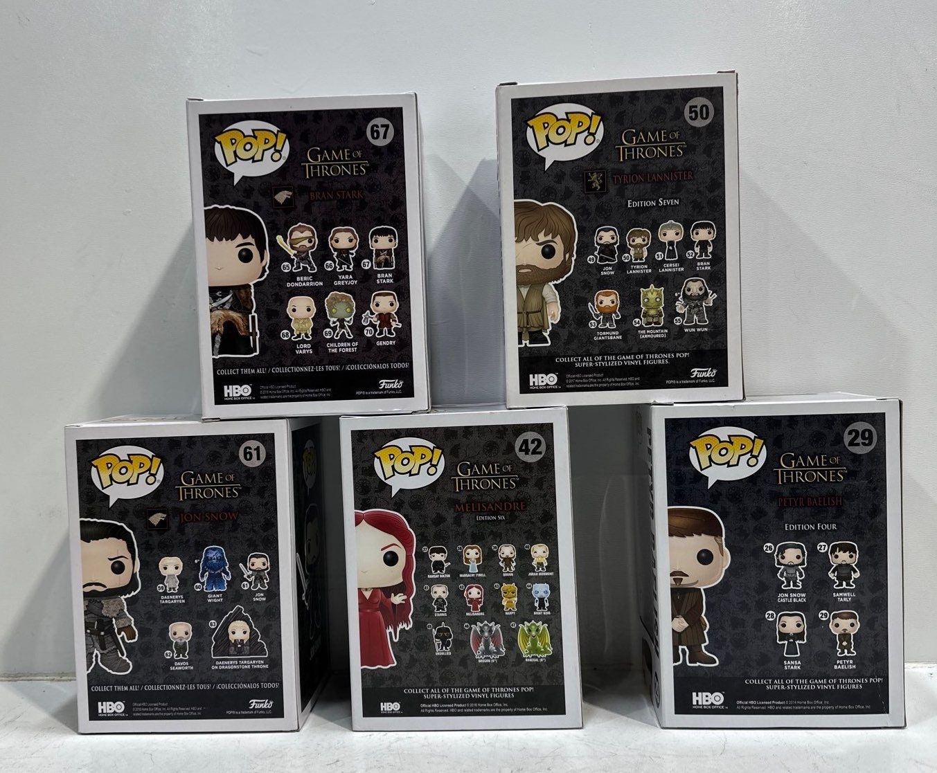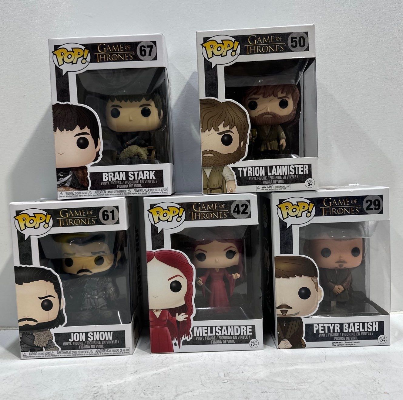 Game of Thrones- Bran Stark, Tyrion Lannister, Jon Snow, Melisandre, Petyr Baelish Funko Pops