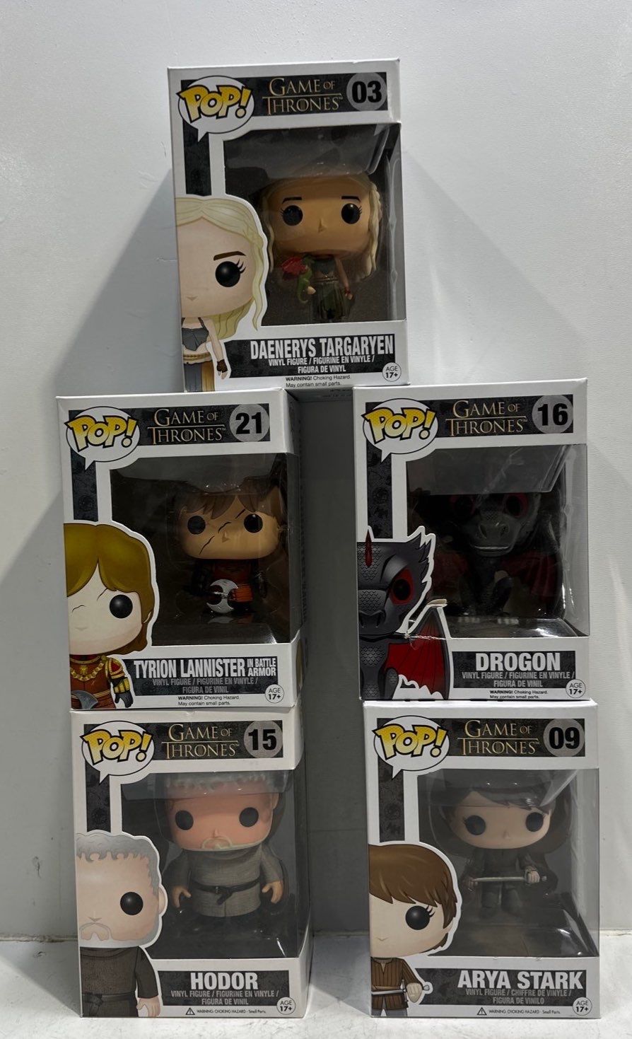 Game of Thrones-Daenerys Targaryen, Tyrion Lannister, Dogon, Hodor, Arya Stark Funko Pops