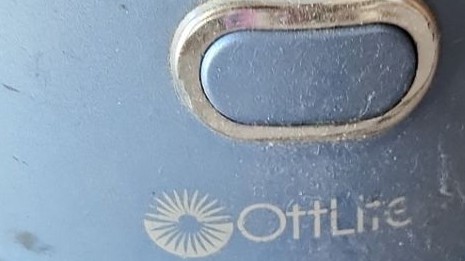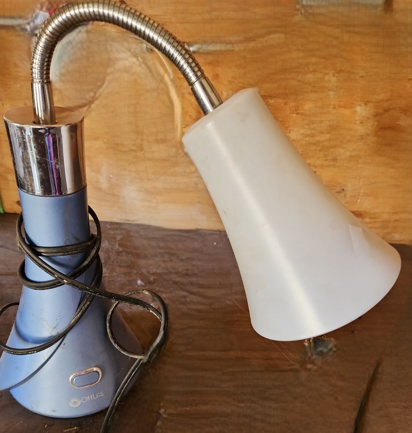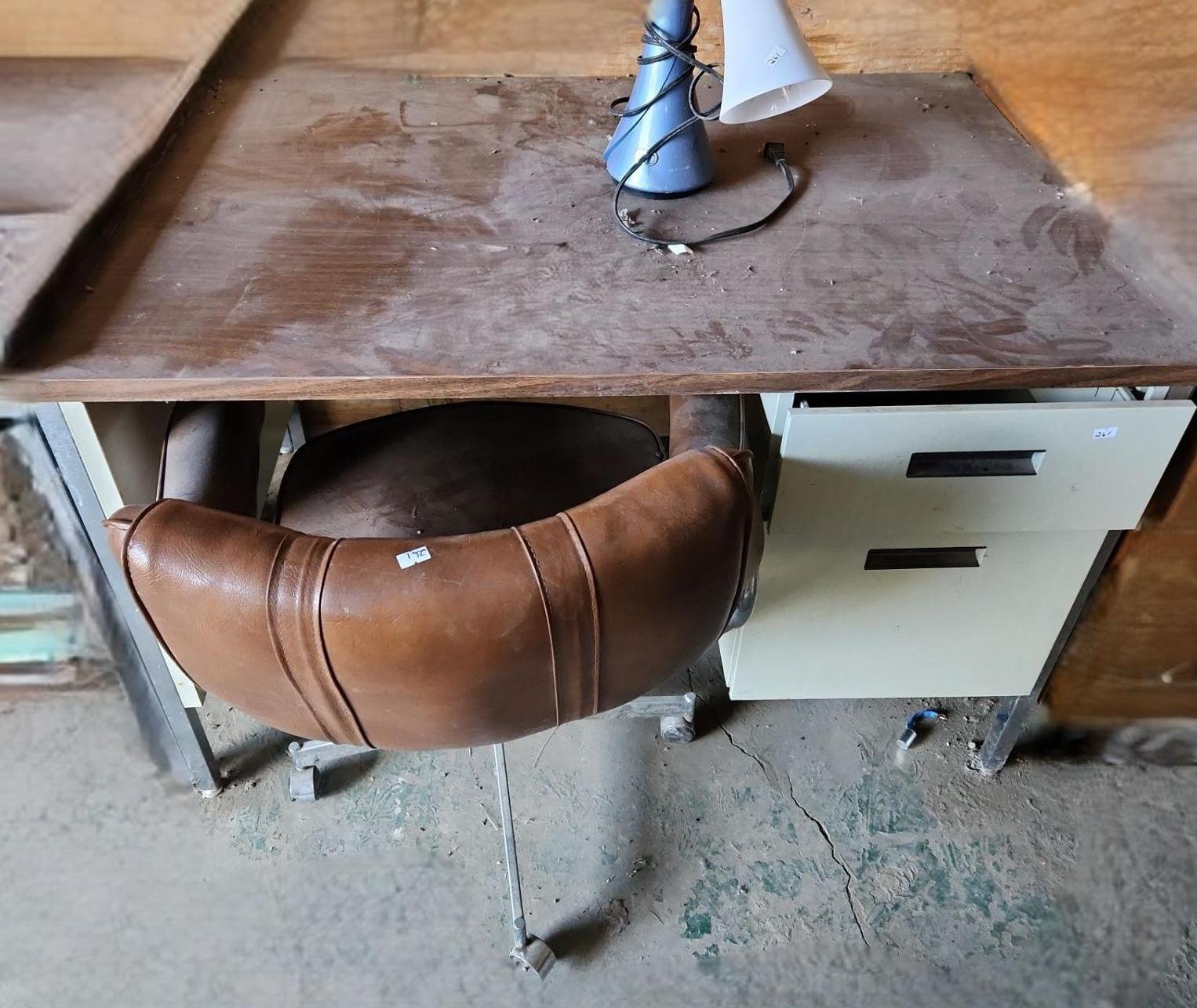 Garage Desk w/ 2 Drawers 45 W, 30 D, 29 T, Chair w/ Vinyl Seat 24 W, 19 D, 31 T, Ottlite Lamp 13 T