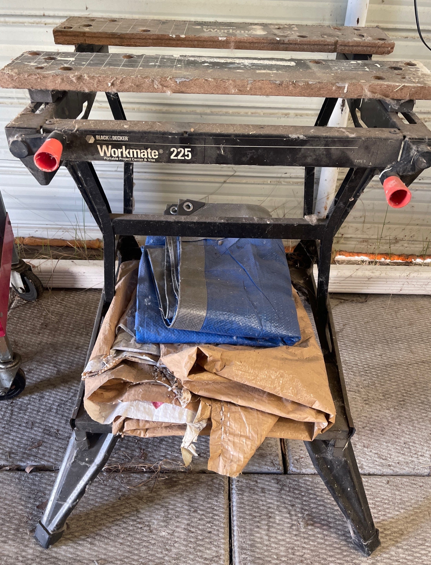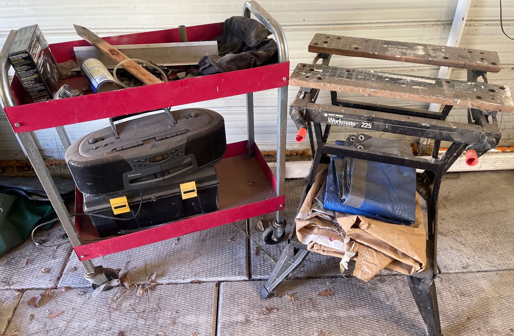 Garage Tool Cart & Work Station ( WorkMate) Table w/ghetto blaster 39"w x 22"d x 36"tall