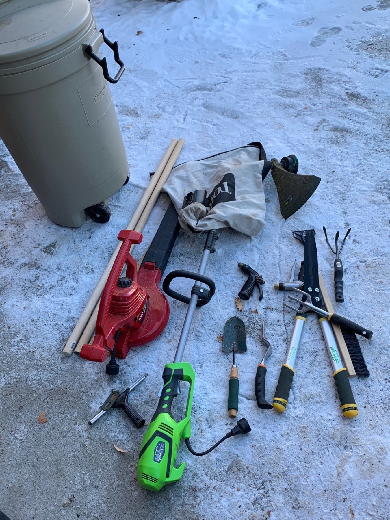 Garden Collection - Toro Blower Greenworx Trimmer Rubbermaid Garbage Canister on Casters