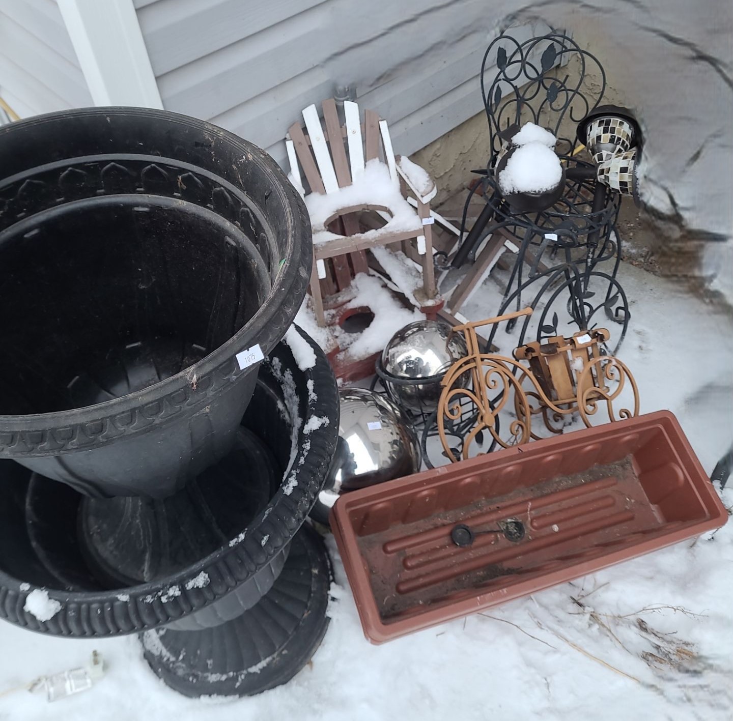 Garden Decor Includes: Large Plastic Urn Planter 21 T, 15 W Diameter Opening, Gazing Balls and More!