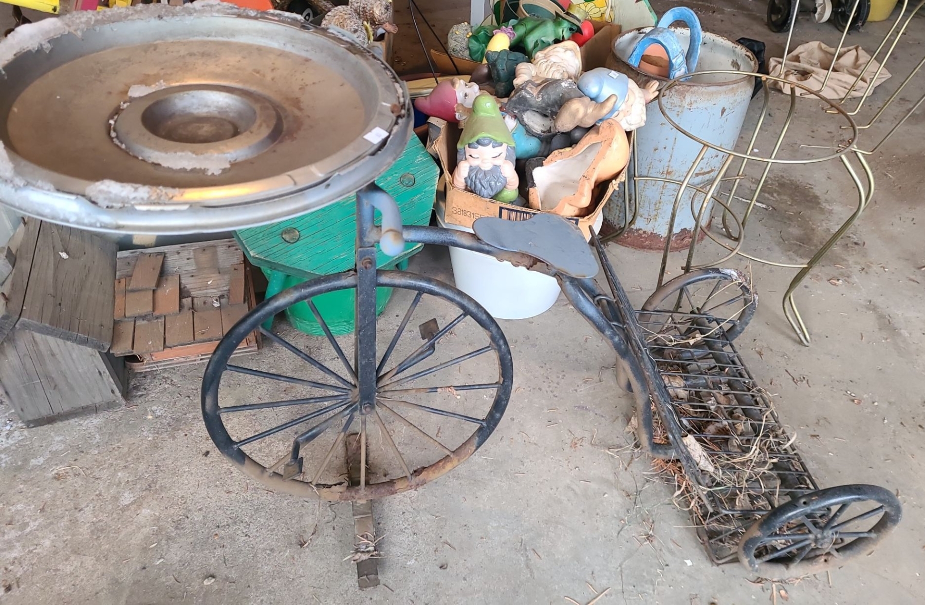 Garden and Yard Decor Including: Ornamental Bicycle 36 W, 24 T, Gnomes, Birdfeeders, and More!
