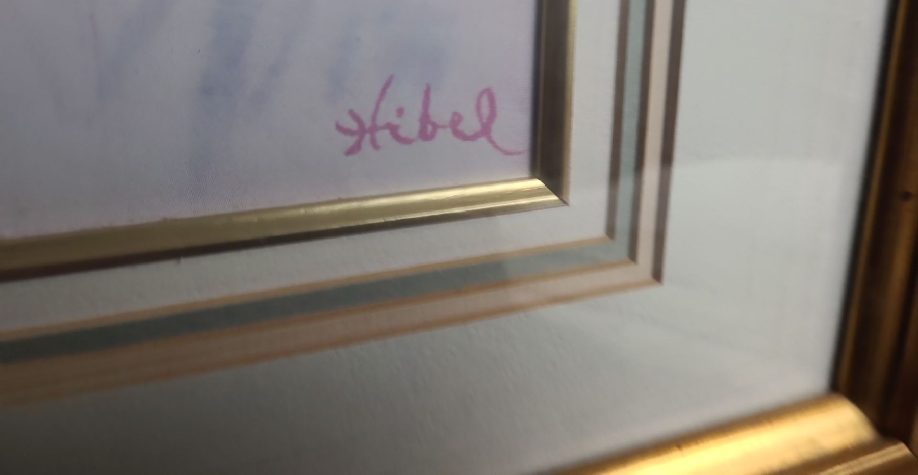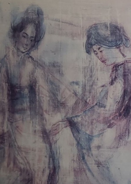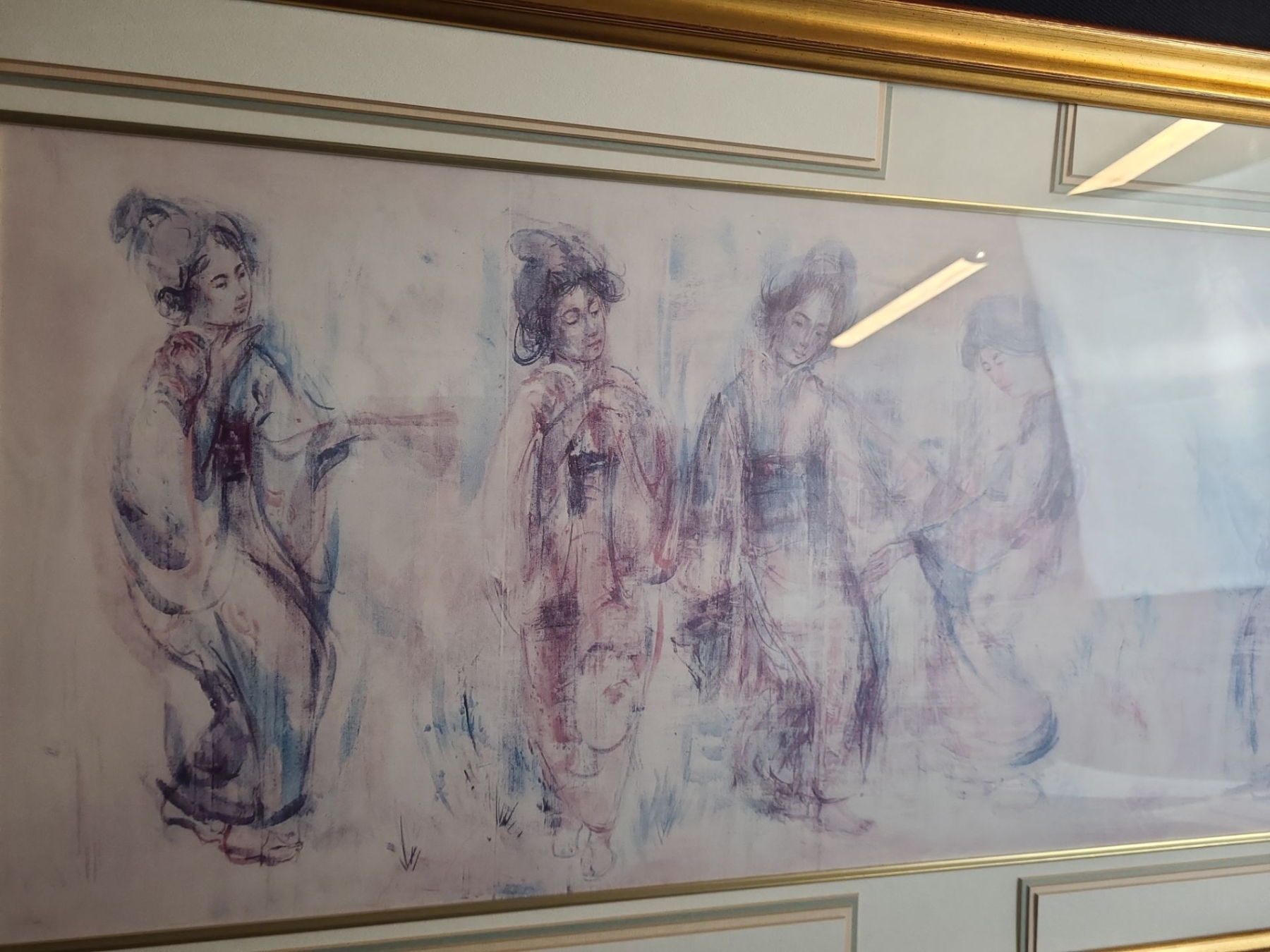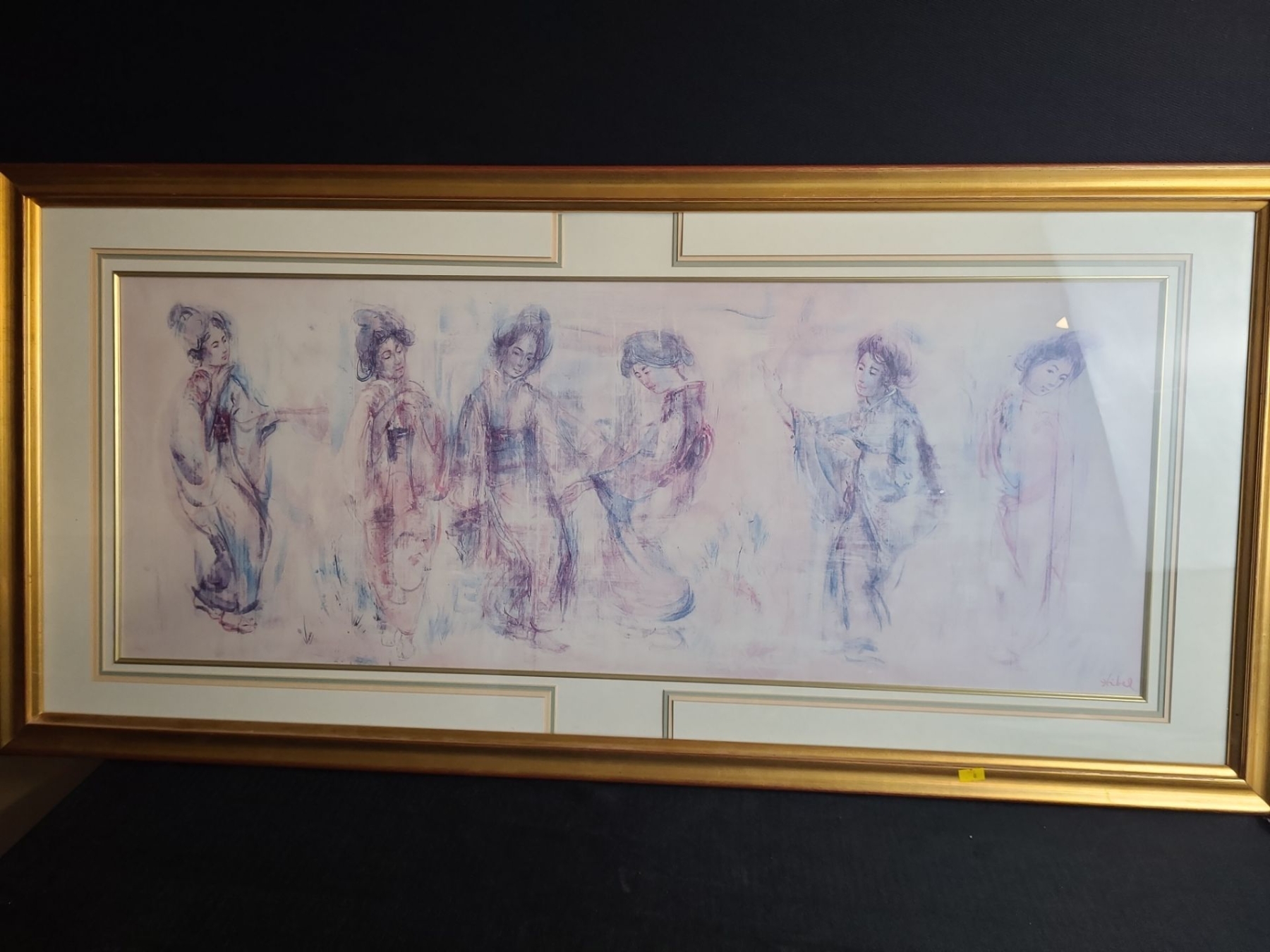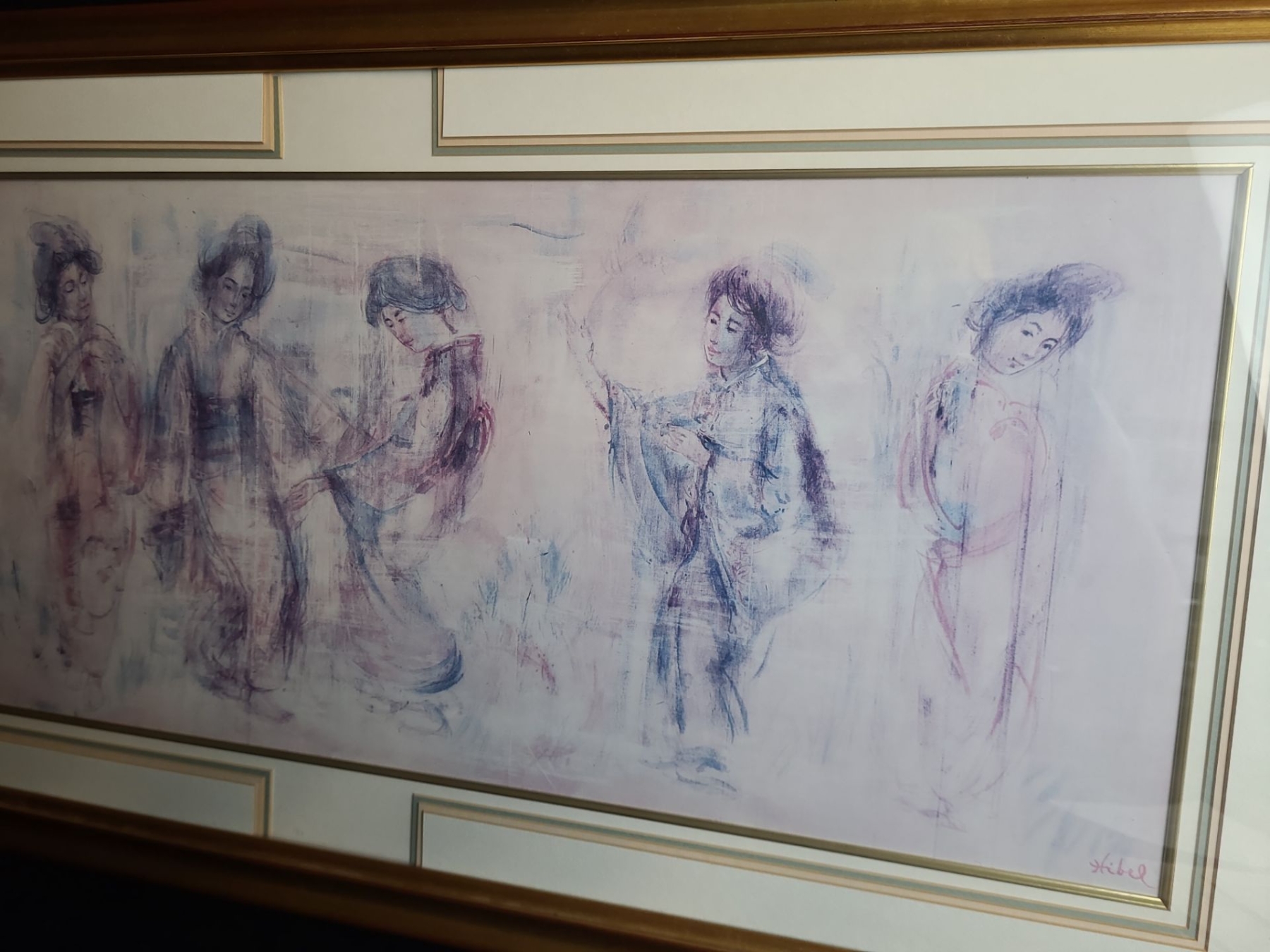 Geisha Print 47 X 22 Signed Hibel, Framed Under Glass