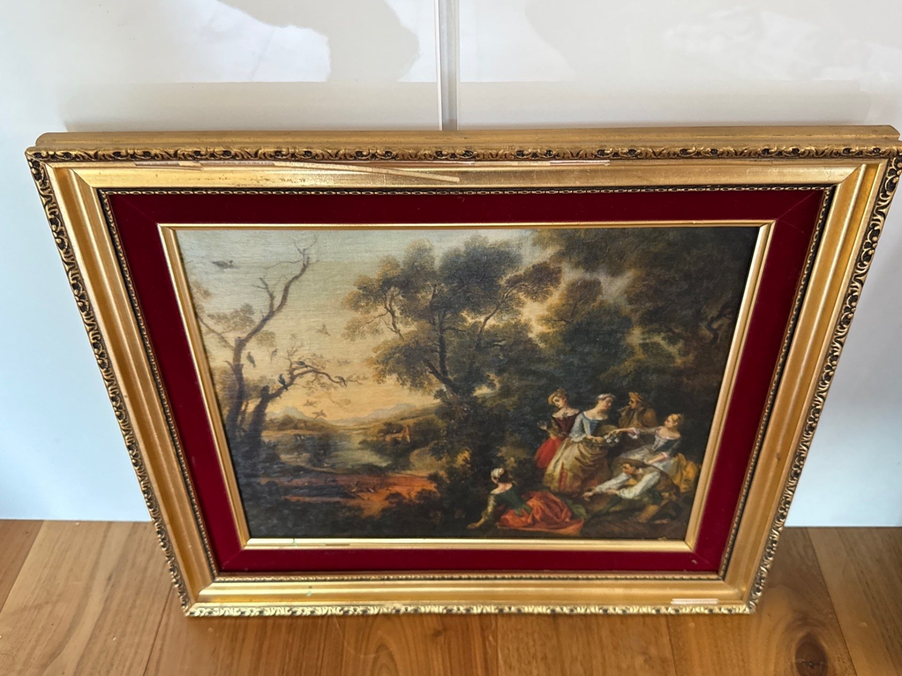 Genuine Fiehl Art Reproduction In Velvet Lined Gold Gilt Frame 16x15
