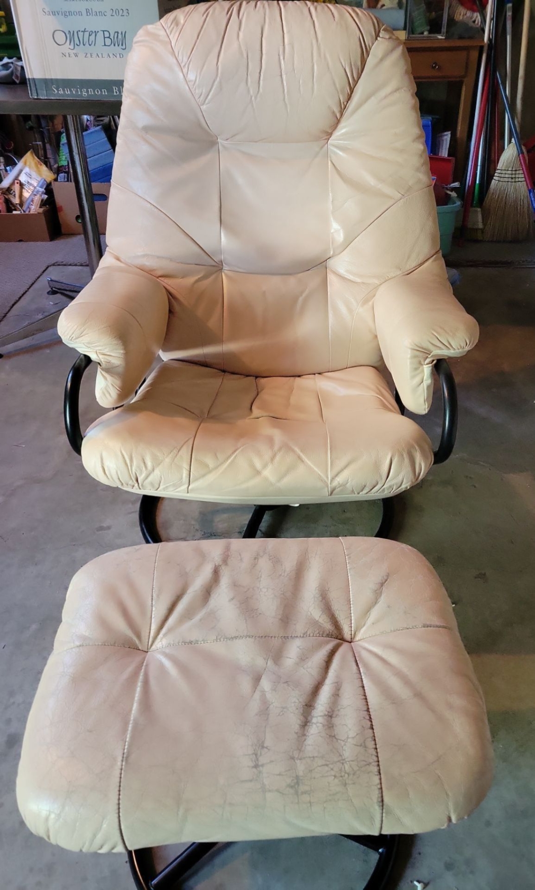 Genuine Leather Mid century Lounge Chair w/ Ottoman 33T