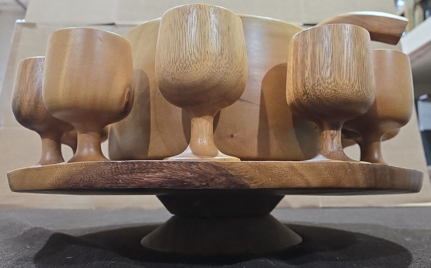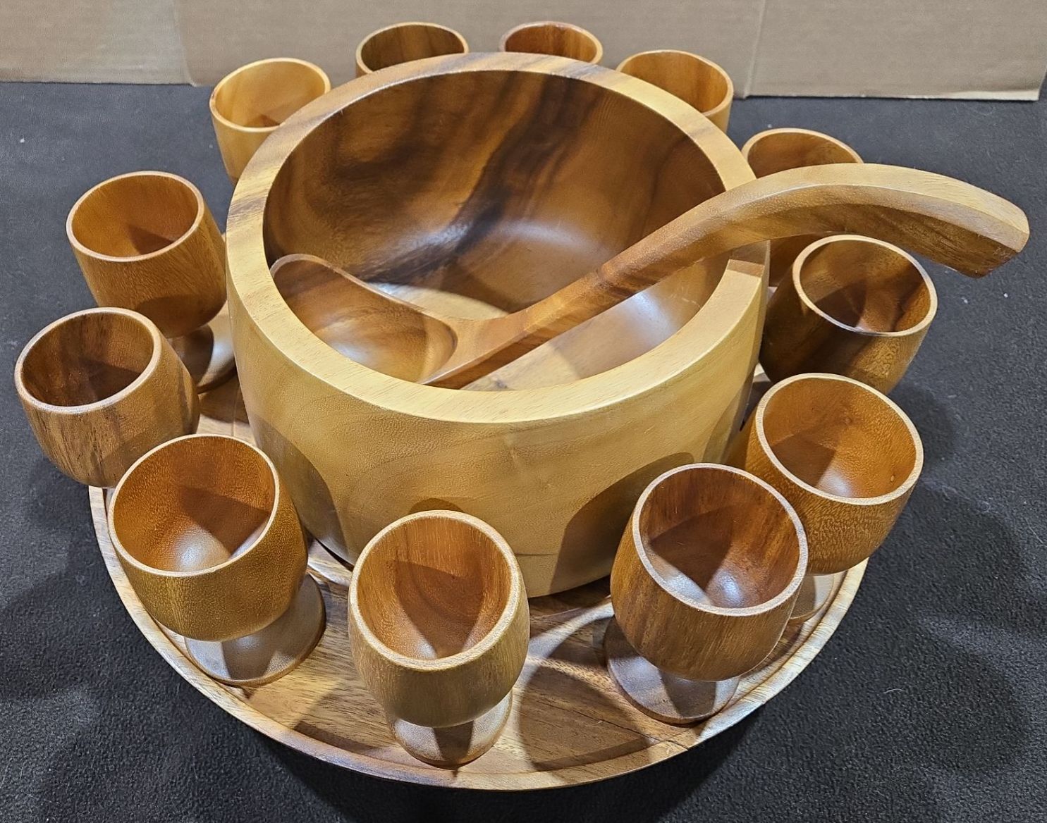 Genuine Monkey Pod Hand Crafted In The Philippines Punch Bowl 15Pc Set