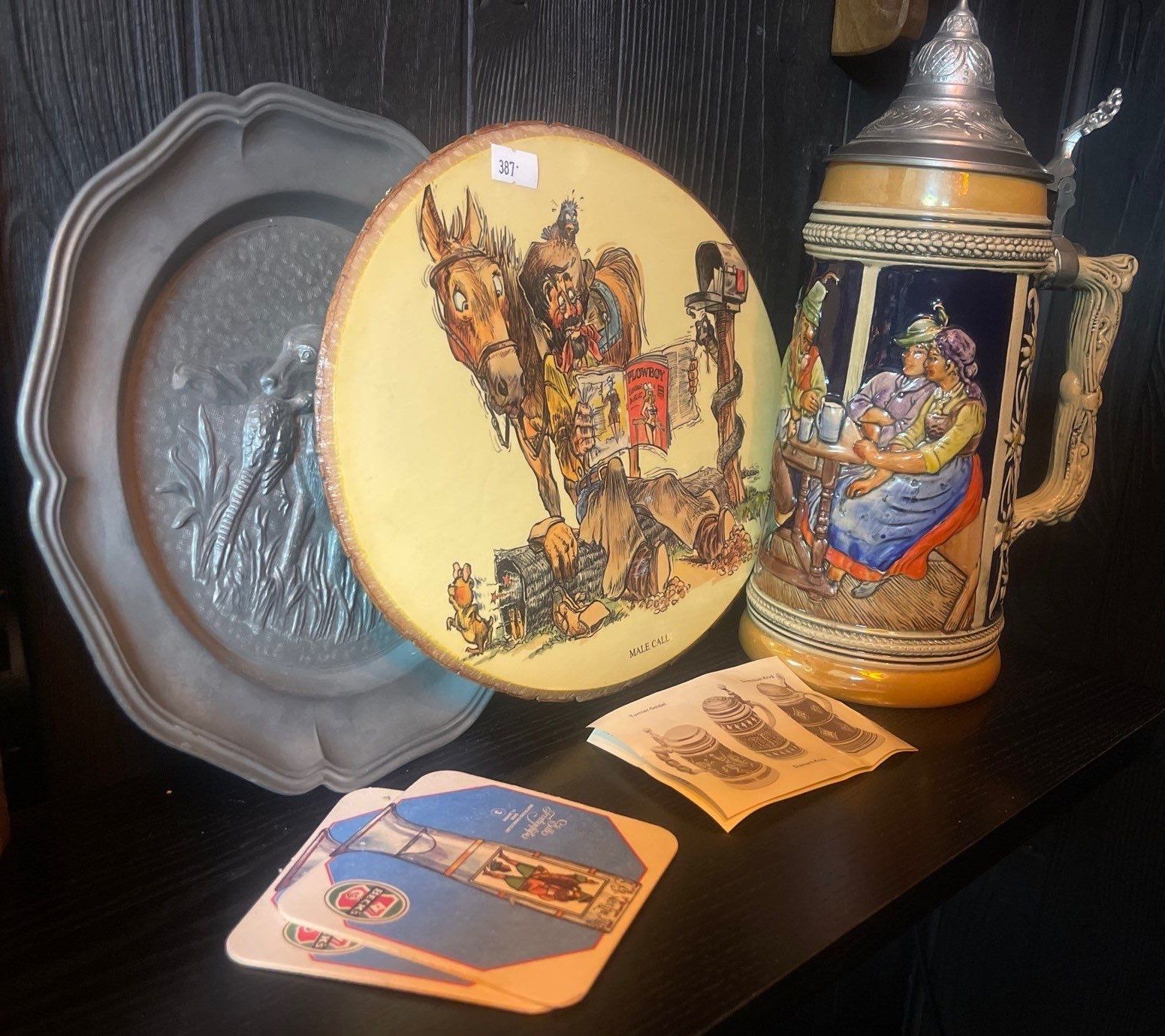German Bar Slingers Collectable Decor Large Beer Stein 15T Pewter Plate & More