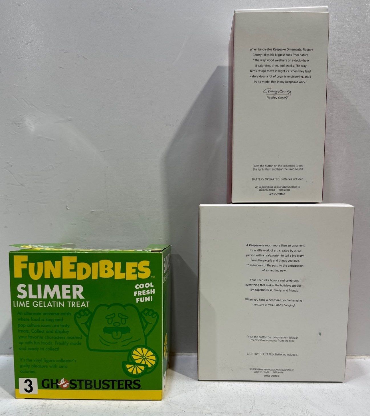 Ghostbusters- Echo 1, Dr Peter Venkman, Slimer Hallmark Ornaments