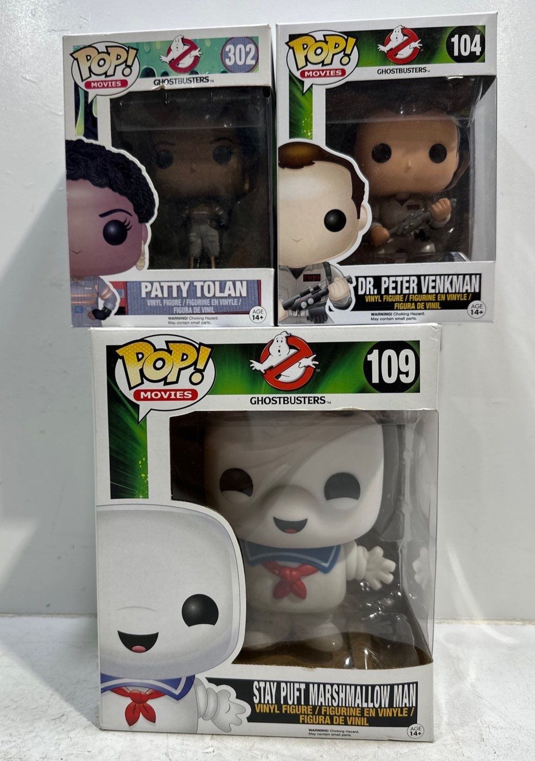 Ghostbusters- Patty Tolan, Dr. Peter Venkman, Stay Puft Marshmallow Man Funko Pops