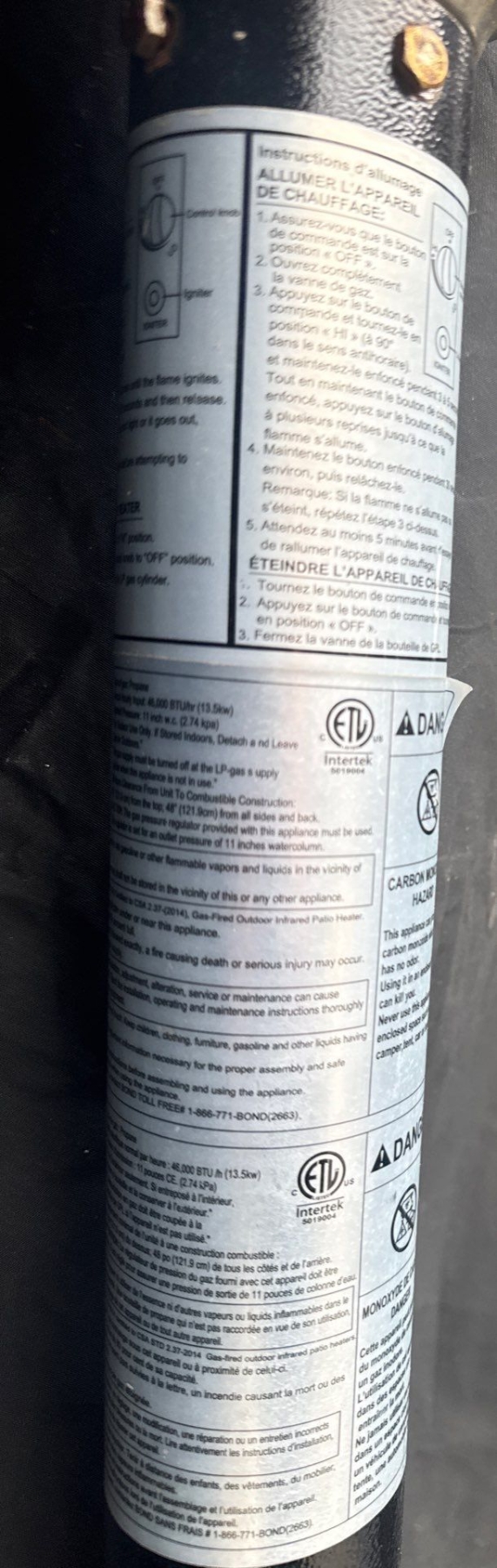 Giant Patio Heating Device Fueled By A Propane Tank 8ft Tall