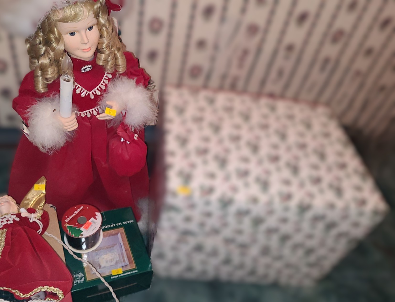 Girl Holding Candle 24 T, Box w/ 3 Trays of Ornaments and More!