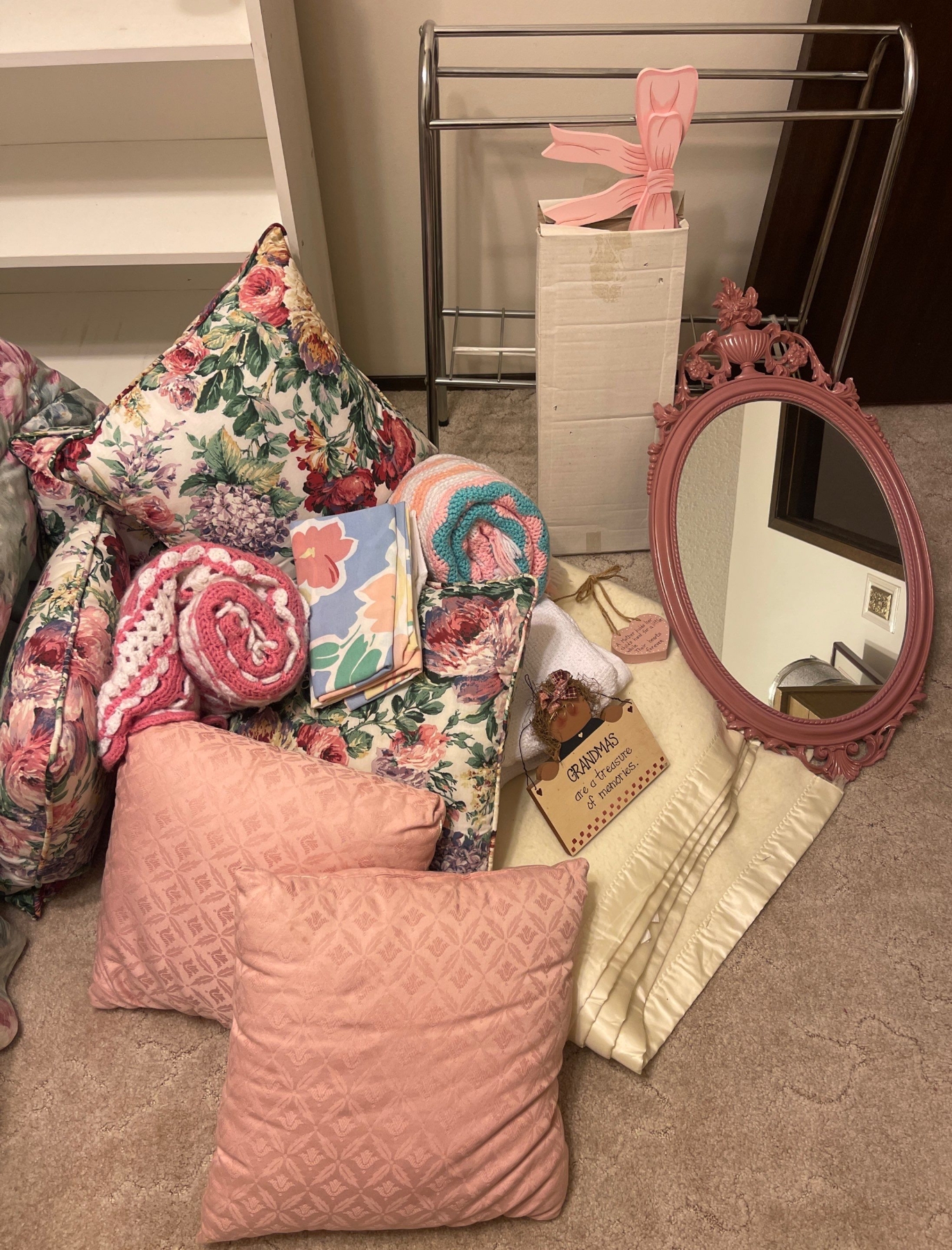 Girly Girl Bedroom Collectables- Throw Pillows Pink Mirror 24T Wool Blanket & More