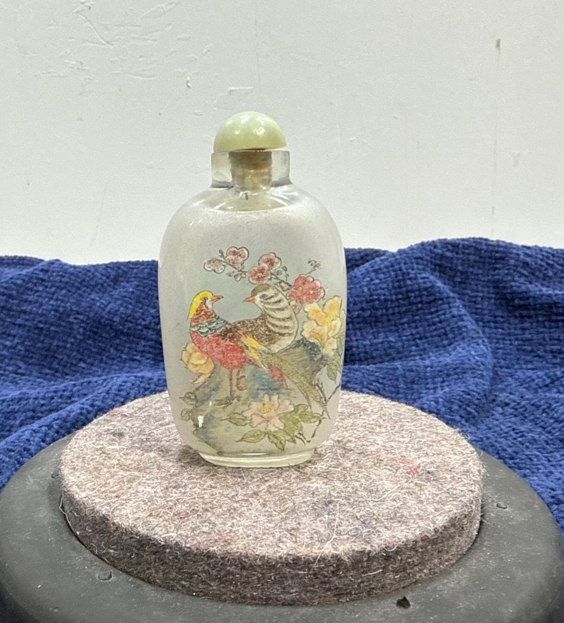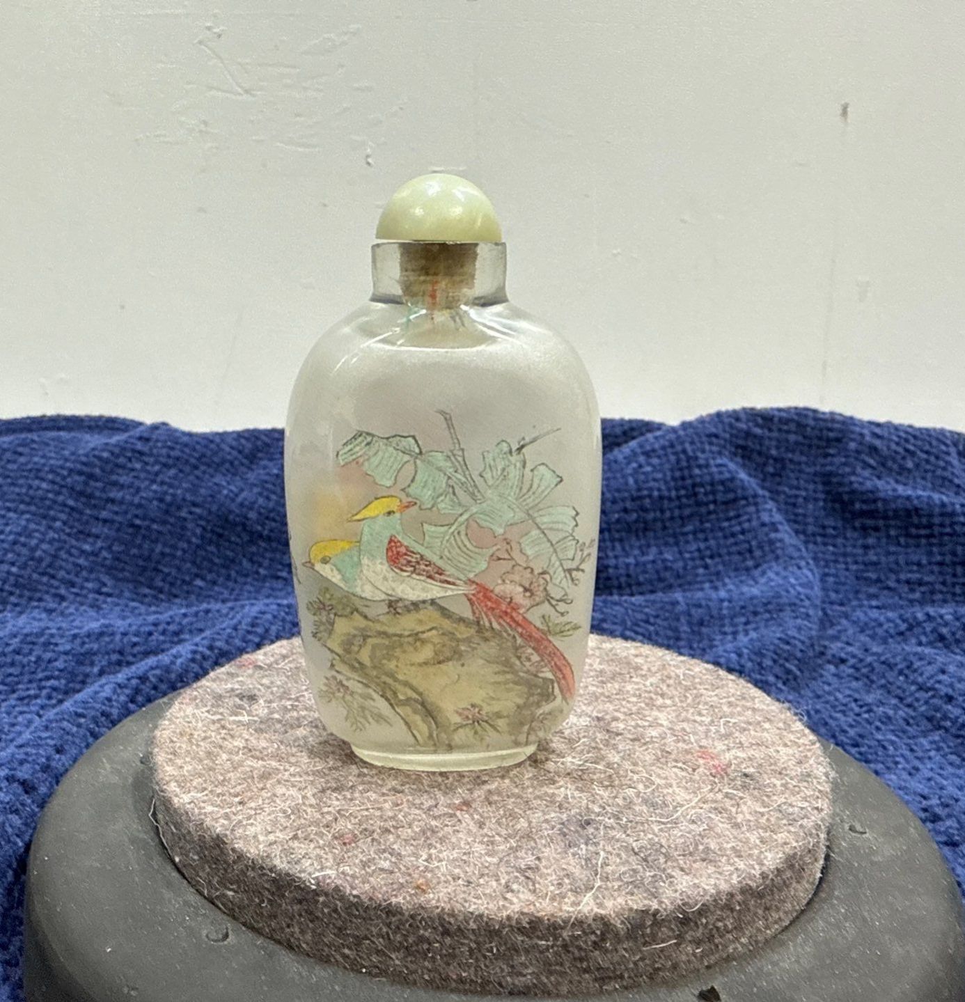 Glass Hand Painted Birds Snuff Bottle 2.25H