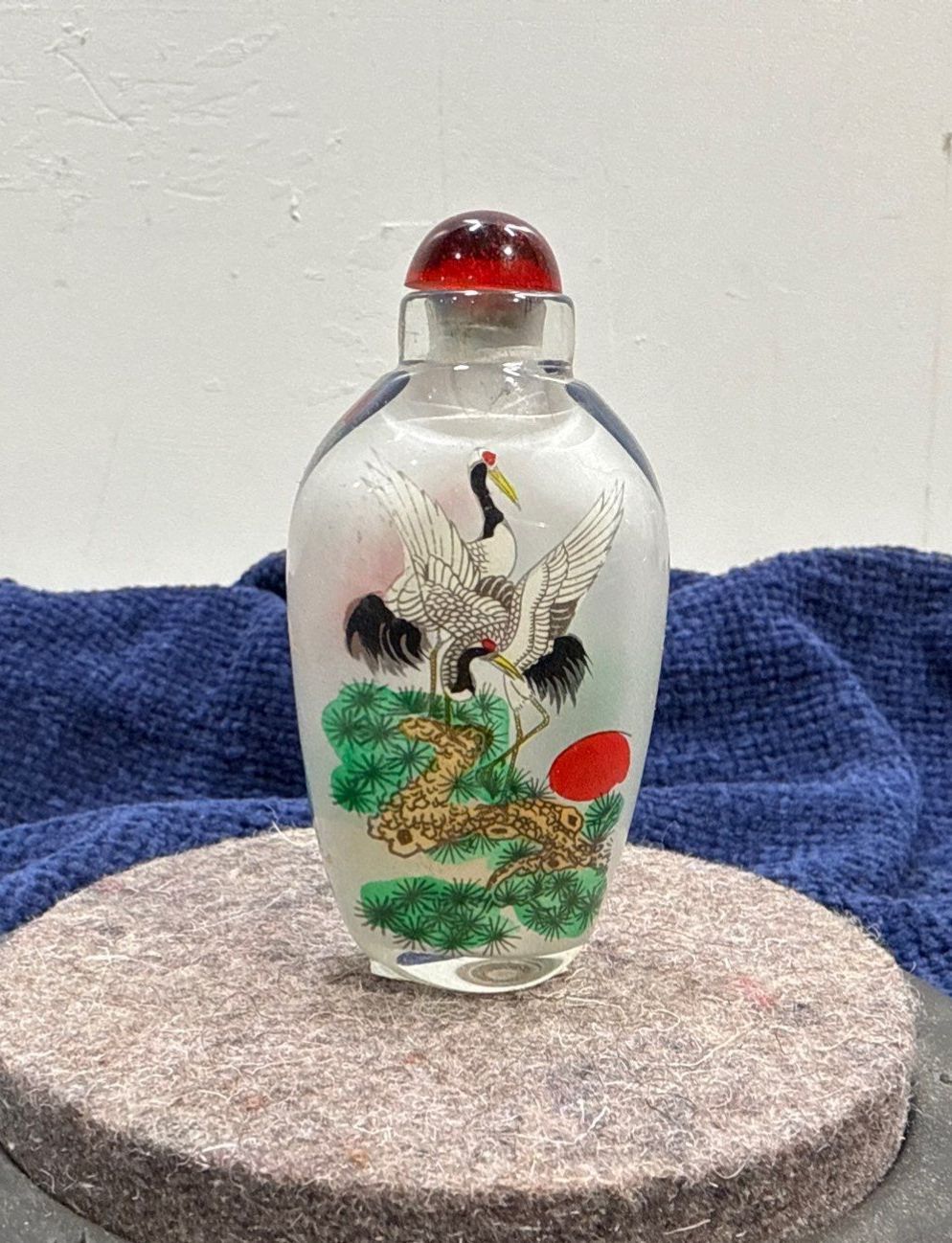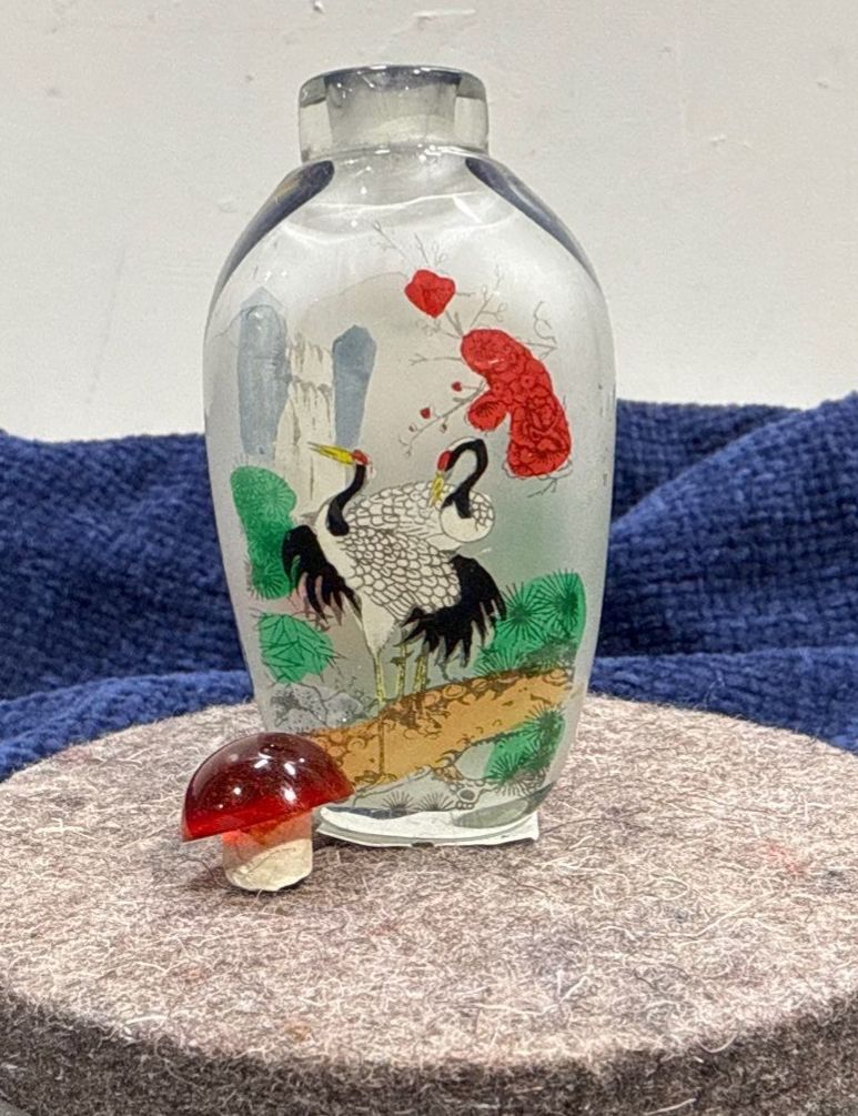 Glass Hand Painted Heron Snuff Bottle 3H