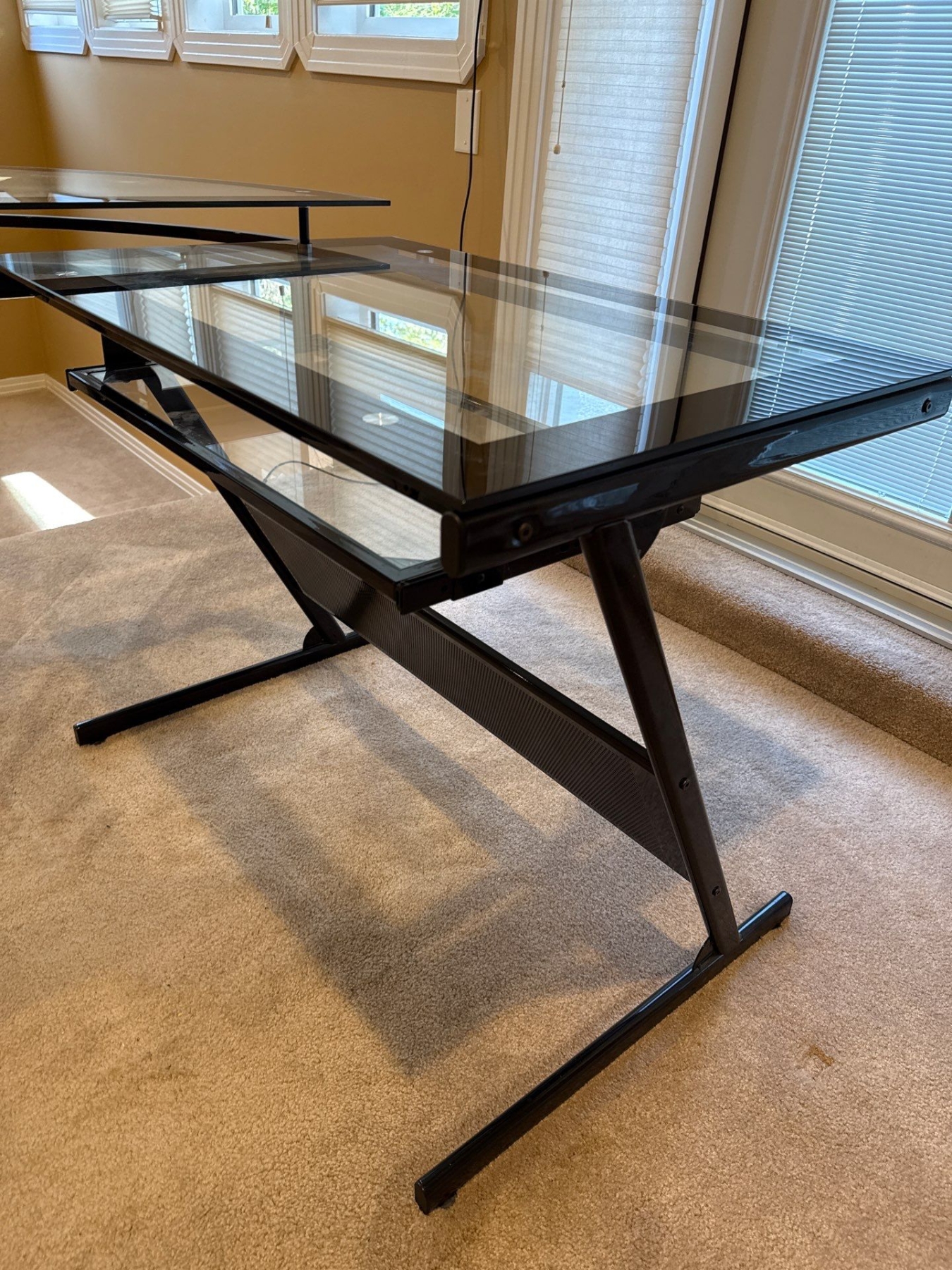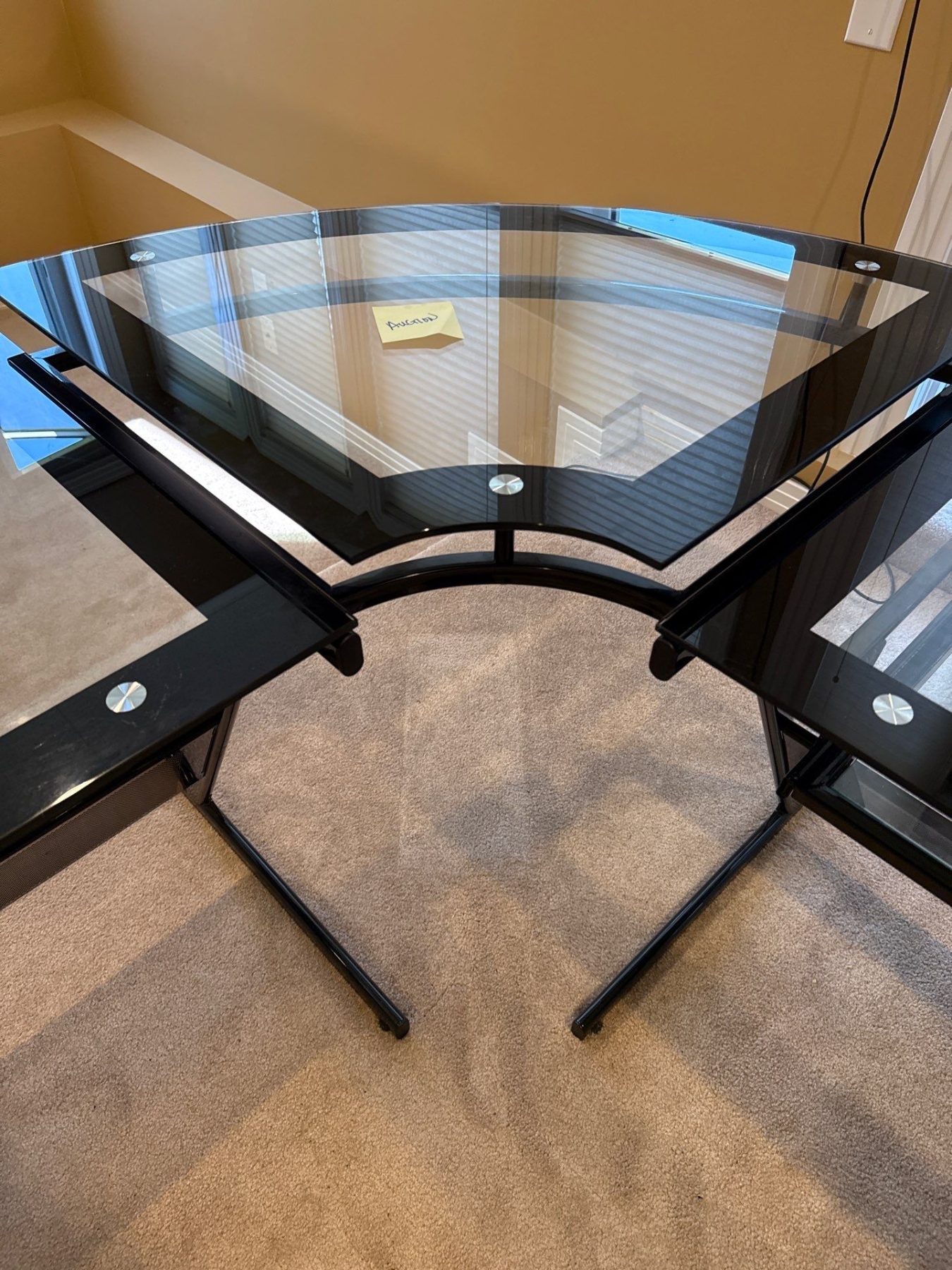 Glass & Metal Corner Desk - One Side is 62W, 24D, 30T