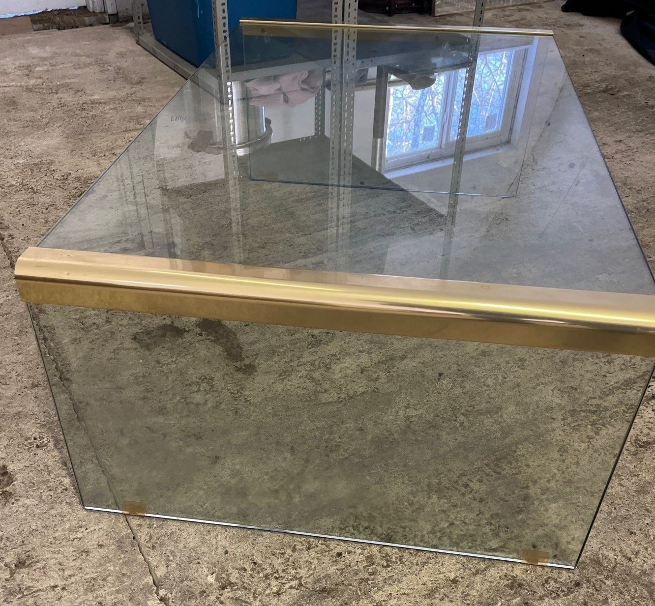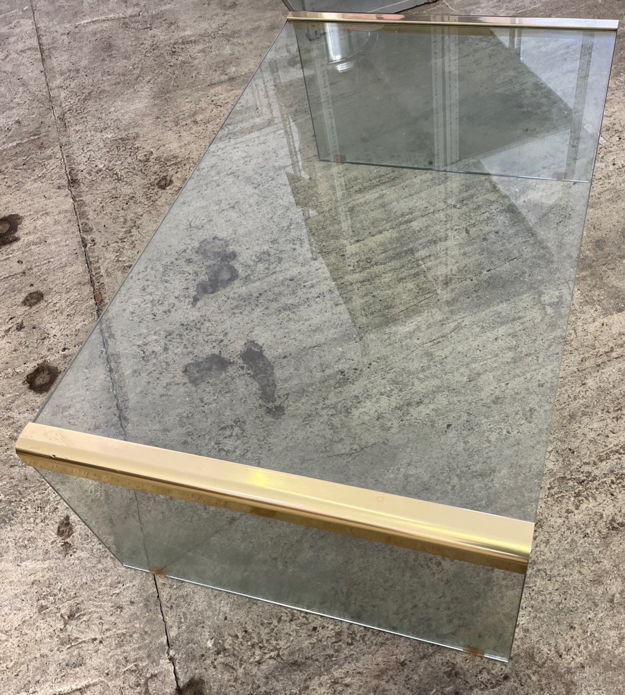 Glass and Brass Coffee Table 48Wx28Dx16H
