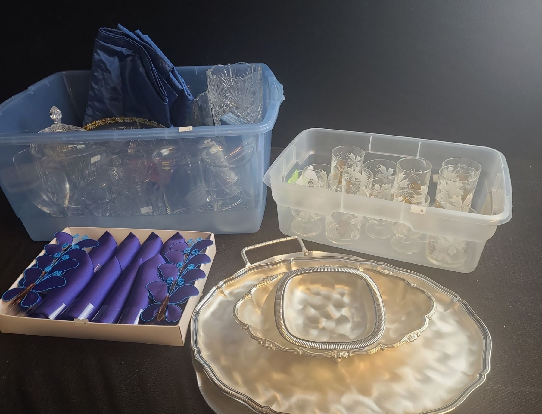Glasses, Napkins w/ Butterfly Holders, Tallest Vase: 5 T, Largest Tray: 14" Diameter and More!
